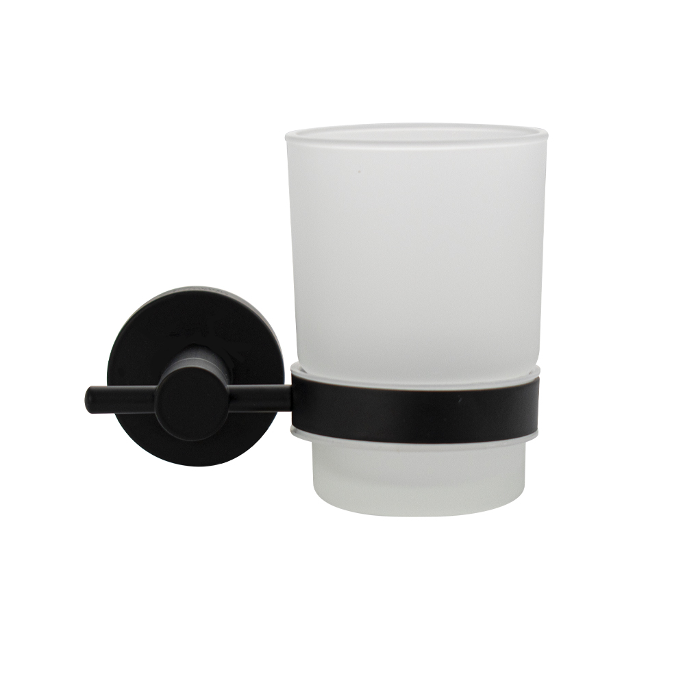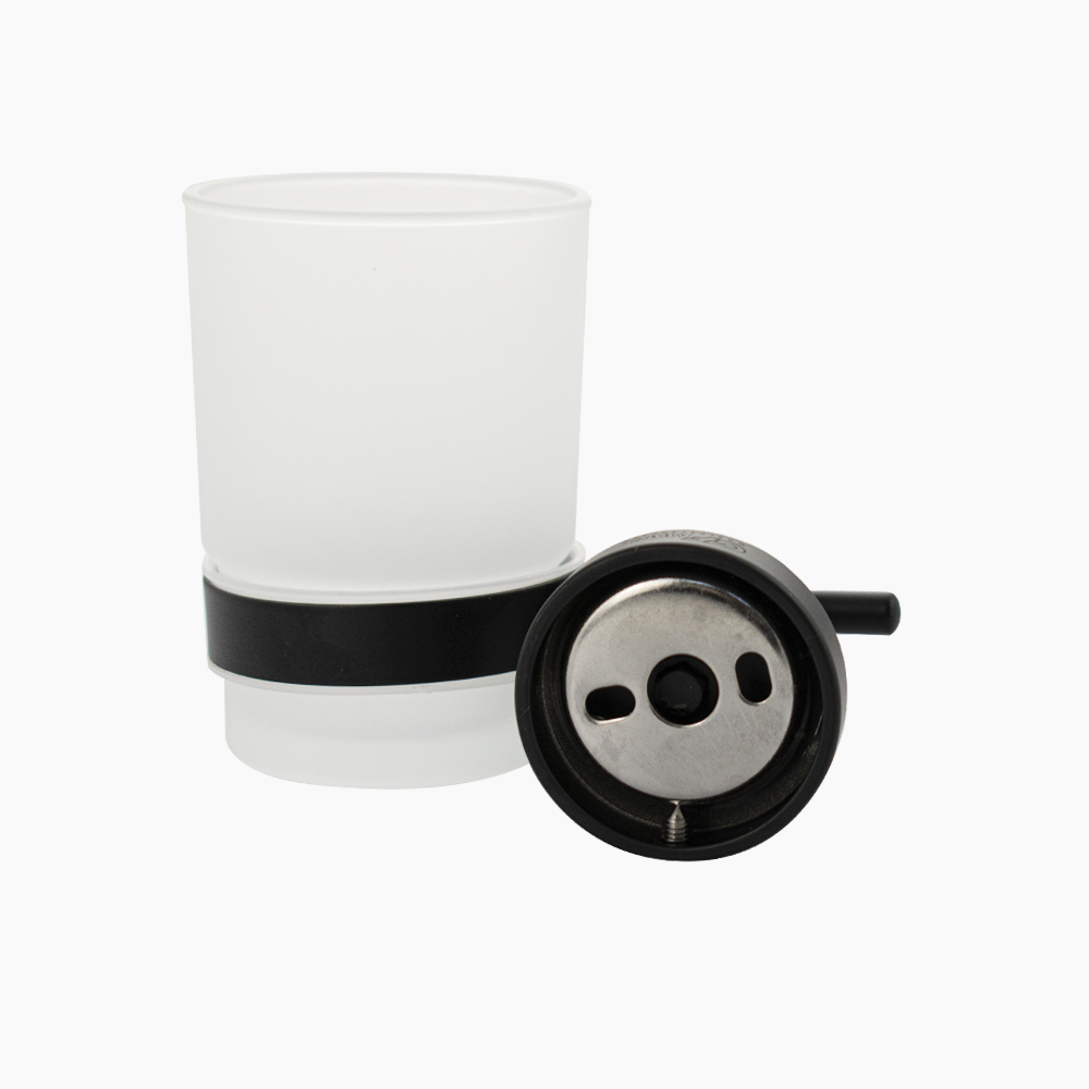 Стакан стеклянный с креплением к стене, круглой формы на основании. Изделие выполнено из матового стекла и металла. Изготовлено из прочной нержавеющей стали марки SUS 304 с матовым покрытием черного цвета, которое придает безупречный стильный вид и долговечность. Идеально подойдет не только для ванной, но и для кухни. Изделие крепится к стене с помощью дюбелей и саморезов (входят в комплект). Габаритные размеры: высота стакана 95 мм, диаметр стакана 65 мм, общая длина 115 мм, диаметр посадочного седла 50 мм. Вес - 0.38 кг, объём - 0.00149 м3.