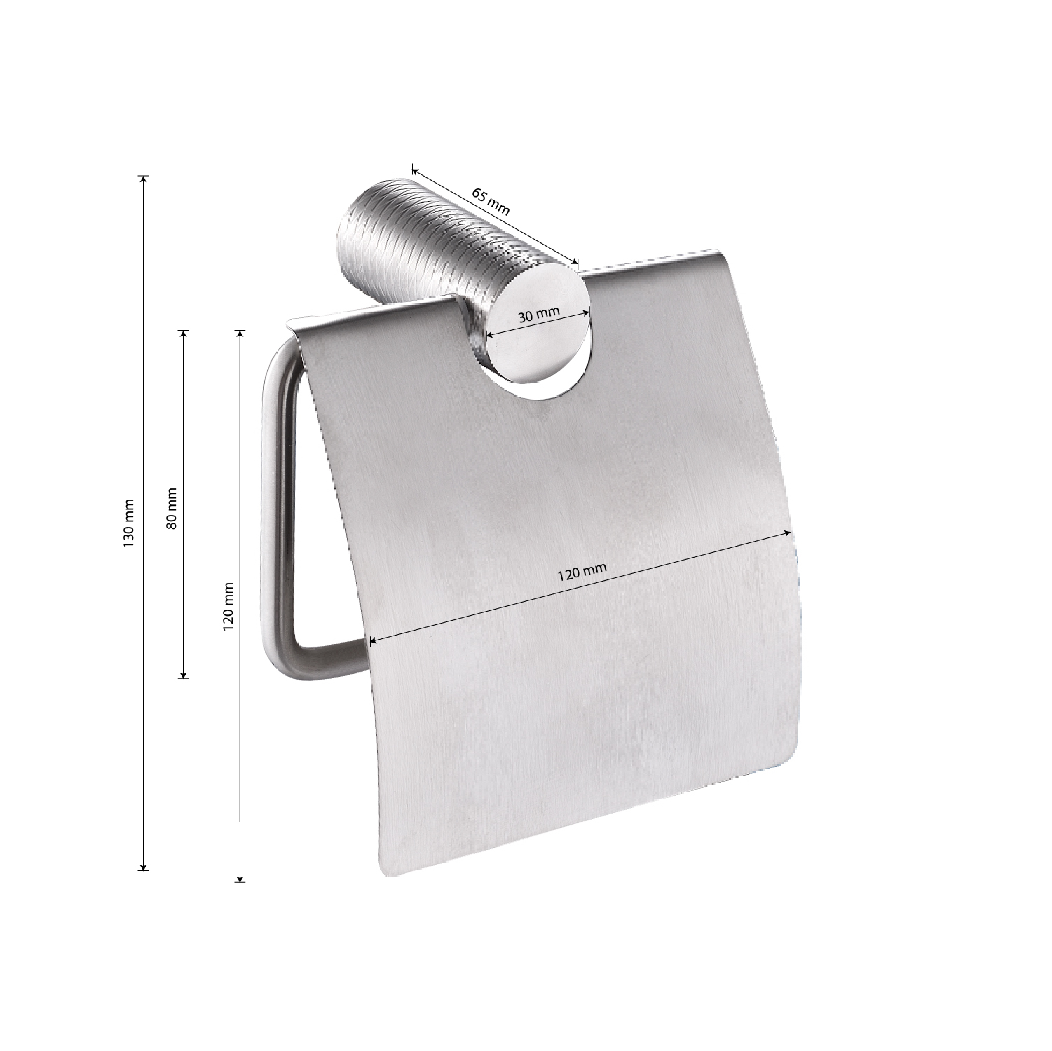 Бумагодержатель с крышкой металлический, стильный и функциональный элемент санузла. Благодаря наличию крышки рулон будет защищен от попадания воды. Держатель для туалетной бумаги легко и удобно крепится к стене при помощи фурнитуры входящей в комплект поставки. Изготовлен из прочной нержавеющей стали марки SUS 304 с матовым покрытием, которое придает безупречный стильный вид и долговечность. Удобно чистить и легко менять рулоны. Габаритные размеры: ширина 120 мм, высота 130 мм, глубина 65 мм, основание 30 мм. Вес - 0,400 кг, объём - 0,00175 м3.