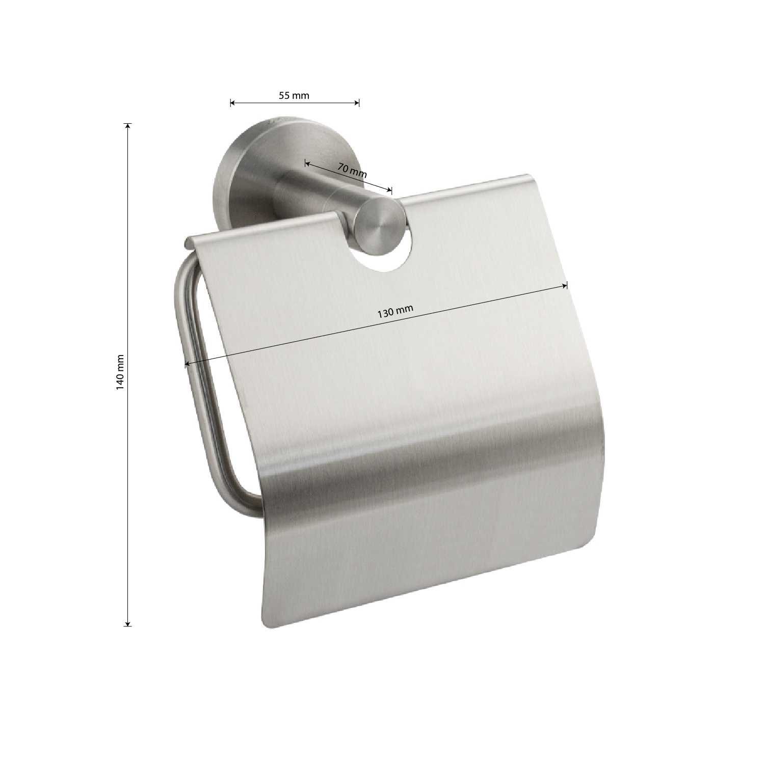 Бумагодержатель с крышкой, металлический, стильный и функциональный элемент санузла. Благодаря наличию крышки рулон будет защищен от попадания воды. Держатель для туалетной бумаги легко и удобно крепится к стене при помощи фурнитуры входящей в комплект поставки. Изготовлен из прочной нержавеющей стали марки SUS 304 с матовым покрытием, которое придает безупречный стильный вид и долговечность. Удобно чистить и легко менять рулоны. Габаритные размеры: ширина 130 мм, высота 140 мм, глубина 70 мм, основание 55 мм. Вес - 0,400 кг, объём - 0,00234 м3.