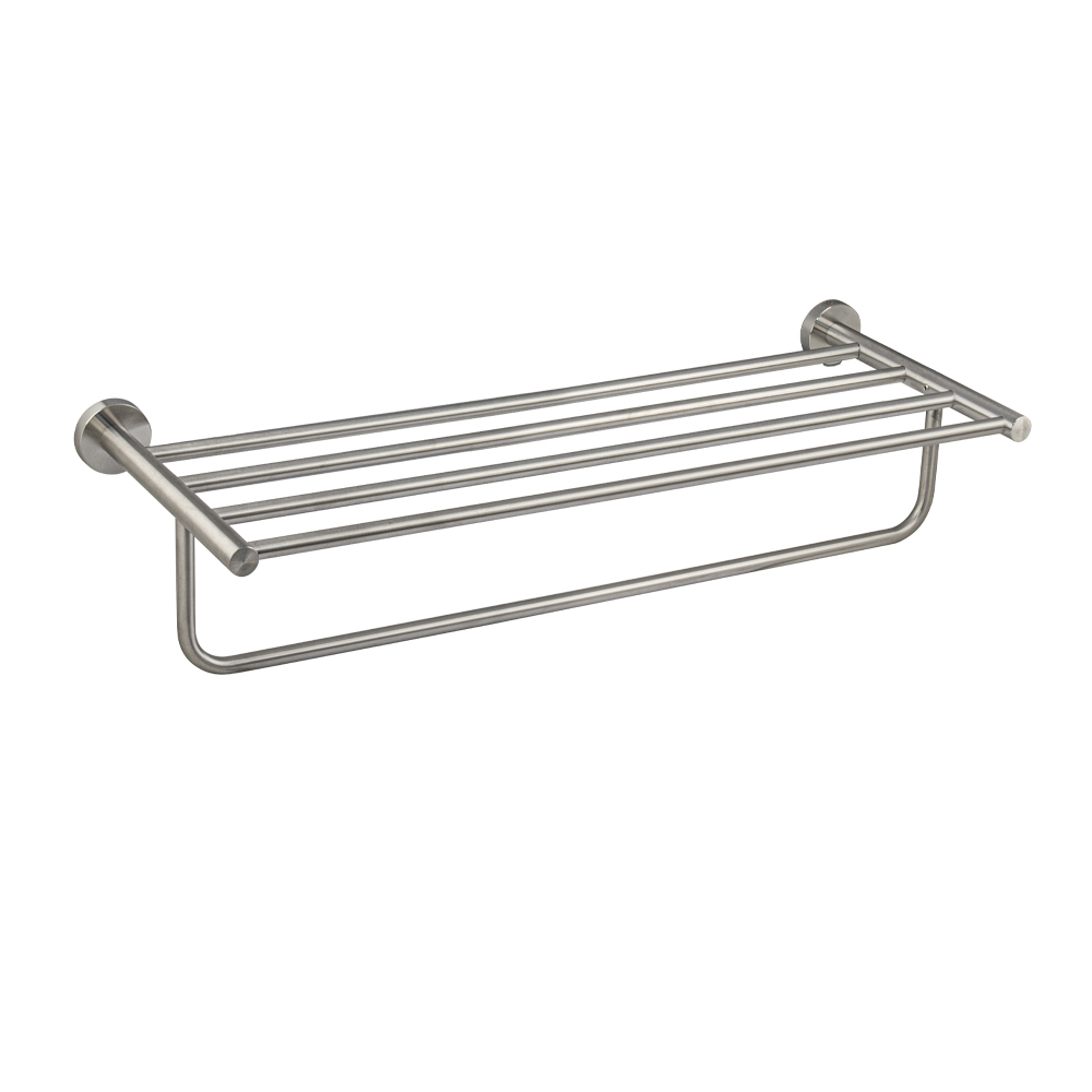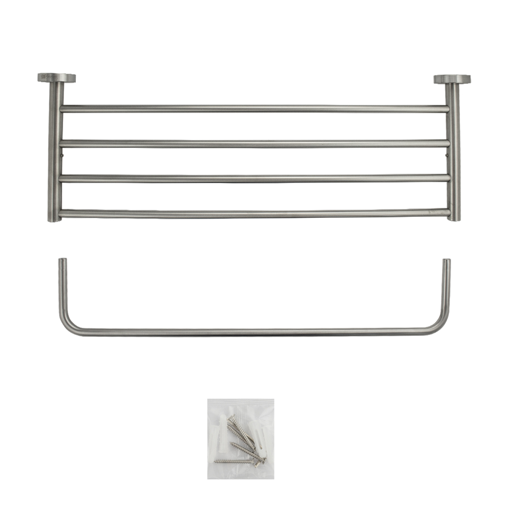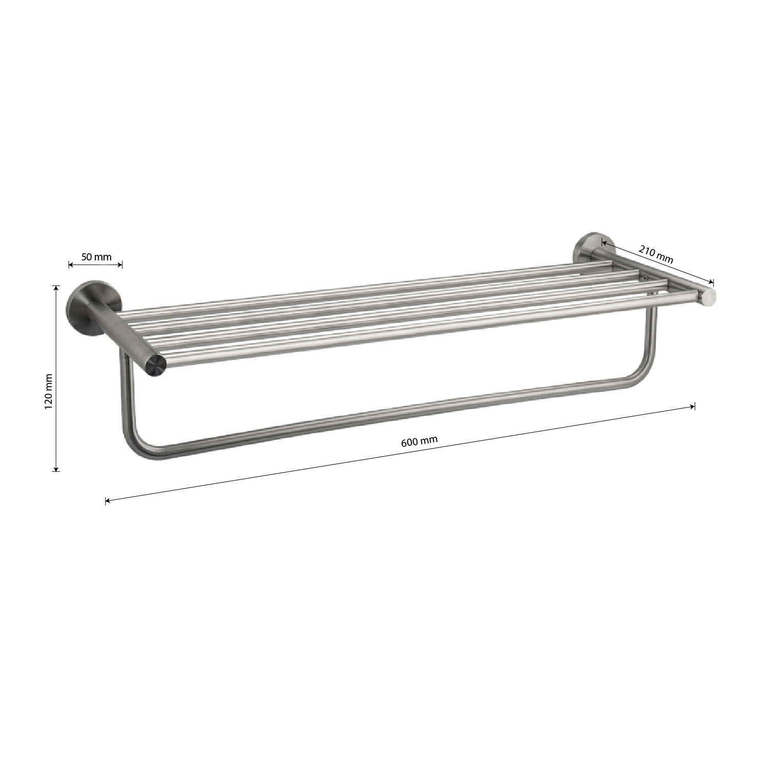 Полка для полотенца с опорой, большая, для ванной, привлекает своим современным дизайном, многофункциональностью и надежностью конструкции. Кухня, ванная, прихожая, кладовая или гардеробная - эта полка идеально подойдет везде. Металлическая полка оснащена дополнительной перекладиной.Матовая нержавеющая сталь делает её устойчивой к влаге и исключает появление ржавчины. Полка для ванной функциональное и практичное решение для любого интерьера. Материал изготовления — нержавеющая сталь марки 304. Матовое покрытие очень стойко переносит истирания и обеспечивает безупречный вид изделия. Идеально подойдет не только для ванной, но и для кухни. Изделие крепится к стене с помощью дюбелей и саморезов (входят в комплект). Габаритные размеры: длина 600 мм, высота 120 мм, глубина 210 мм. основание 50 мм. Вес - 1,300 кг, объём - 0,01231 м3.