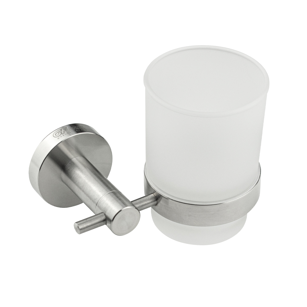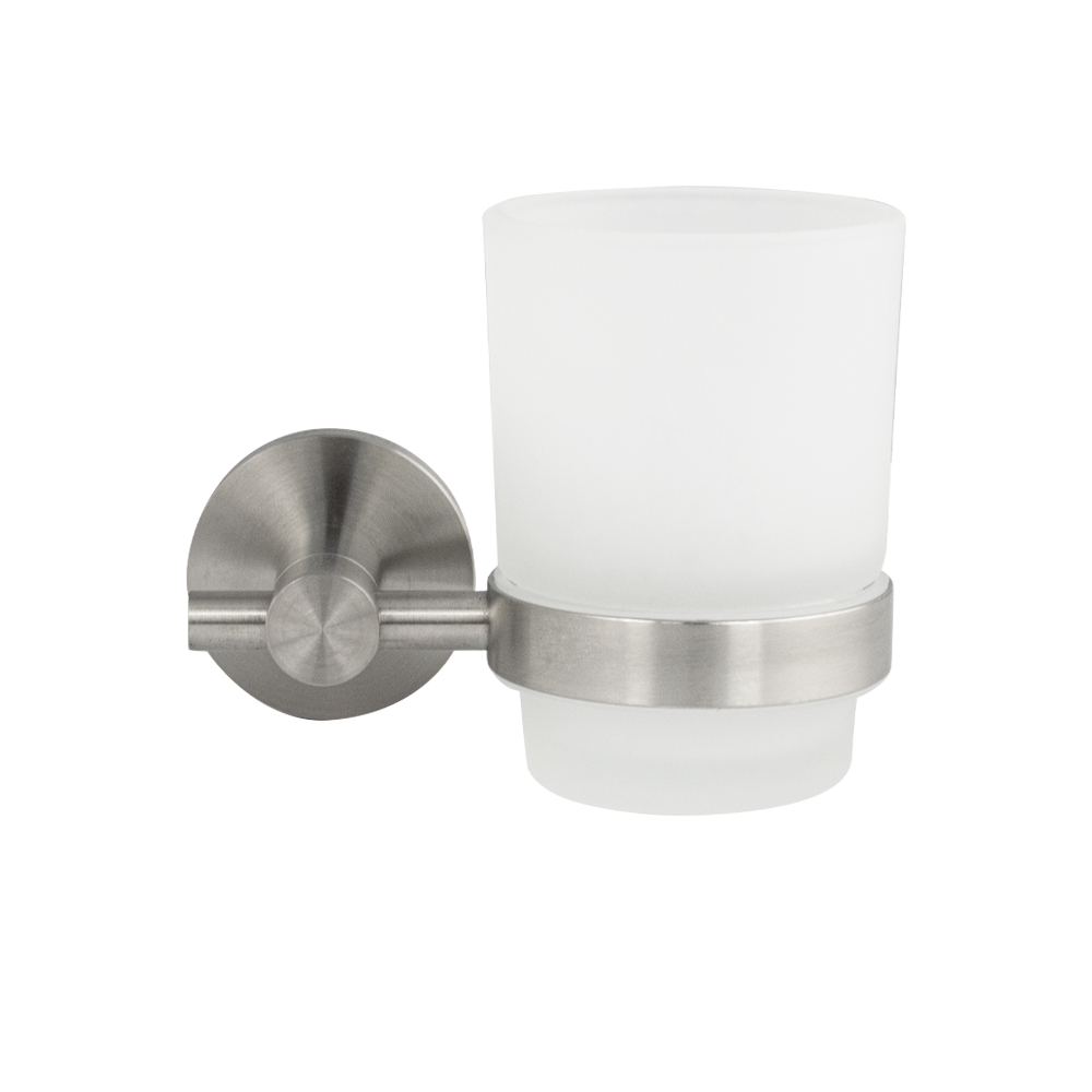 Стакан стеклянный с креплением к стене, правильной формы на основании. Изделие выполнено из матового стекла и металла с матовым покрытием Изготовлен из прочной нержавеющей стали марки SUS 304 с матовым покрытием, которое придает безупречный стильный вид и долговечность. Идеально подойдет не только для ванной, но и для кухни. Изделие крепится к стене с помощью дюбелей и саморезов (входят в комплект). Габаритные размеры: высота стакана 95 мм, диаметр 65 мм, ширина 115 мм, основание 50 мм. Вес - 0,500 кг, объём - 0,00225 м3.