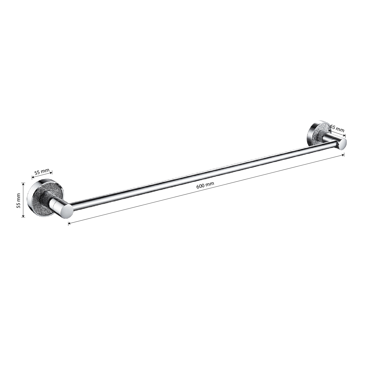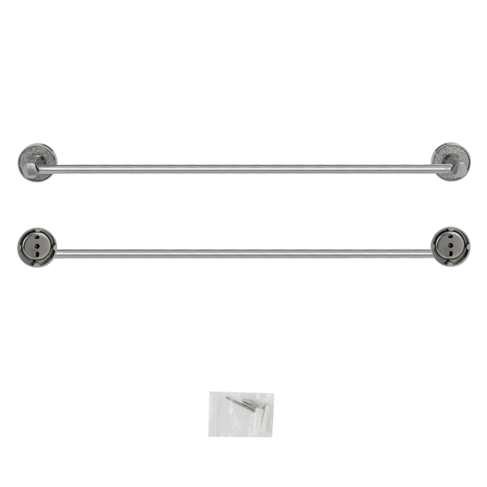 Держатель для полотенец металлический, хромированный, прямой. Материал изготовления — ЦАМ (цинк-алюминий-медь) + нержавеющая сталь. Хромированное покрытие очень стойко переносит истирания и обеспечивает зеркальный блеск изделия. На держателе с легкостью можно размещать любые полотенца для сушки. Идеально подойдет не только для ванной, но и для кухни, а также для дачи или гаража - при необходимости на держатель можно вешать любые предметы. Изделие крепится к стене с помощью дюбелей и саморезов (входят в комплект). Размеры: длина 600 мм, диаметр посадочного седла 55 мм, глубина 65 мм. Вес - 0,600 кг, объём - 0,00470 м3.