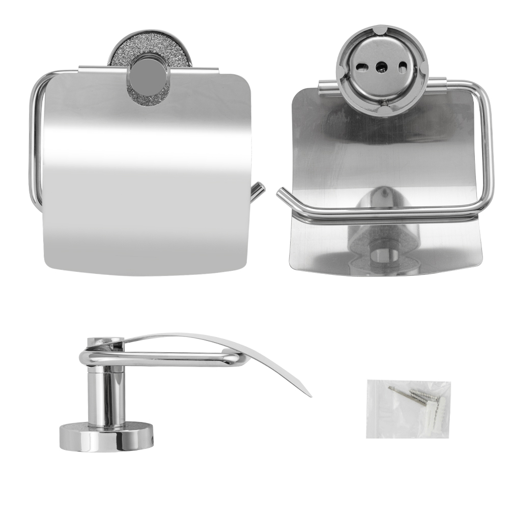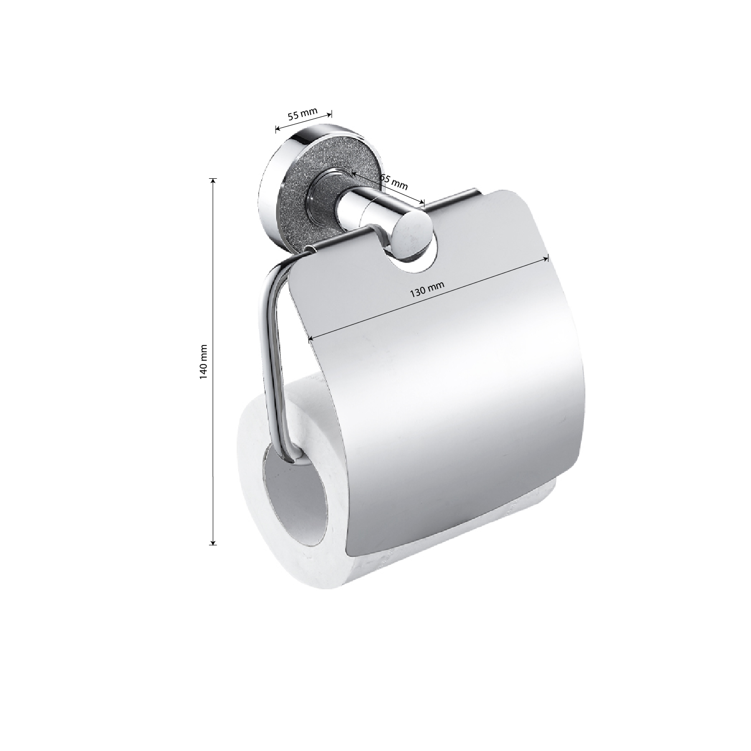 Бумагодержатель с крышкой металлический, хромированный, стильный и функциональный элемент санузла. Благодаря наличию крышки рулон будет защищен от попадания воды. Держатель для туалетной бумаги легко и удобно крепится к стене при помощи фурнитуры входящей в комплект поставки. Материал изготовления — ЦАМ (цинк-алюминий-медь) + нержавеющая сталь. Имеет специальное хромированное покрытие, которое защищает изделие от влаги и придает ему блестящий внешний вид. Удобно чистить и легко менять рулоны. Размеры: ширина 130 мм, высота 140 мм, основание 55 мм. Вес - 0,500 кг, объём - 0,00184 м3.