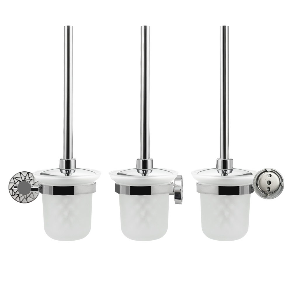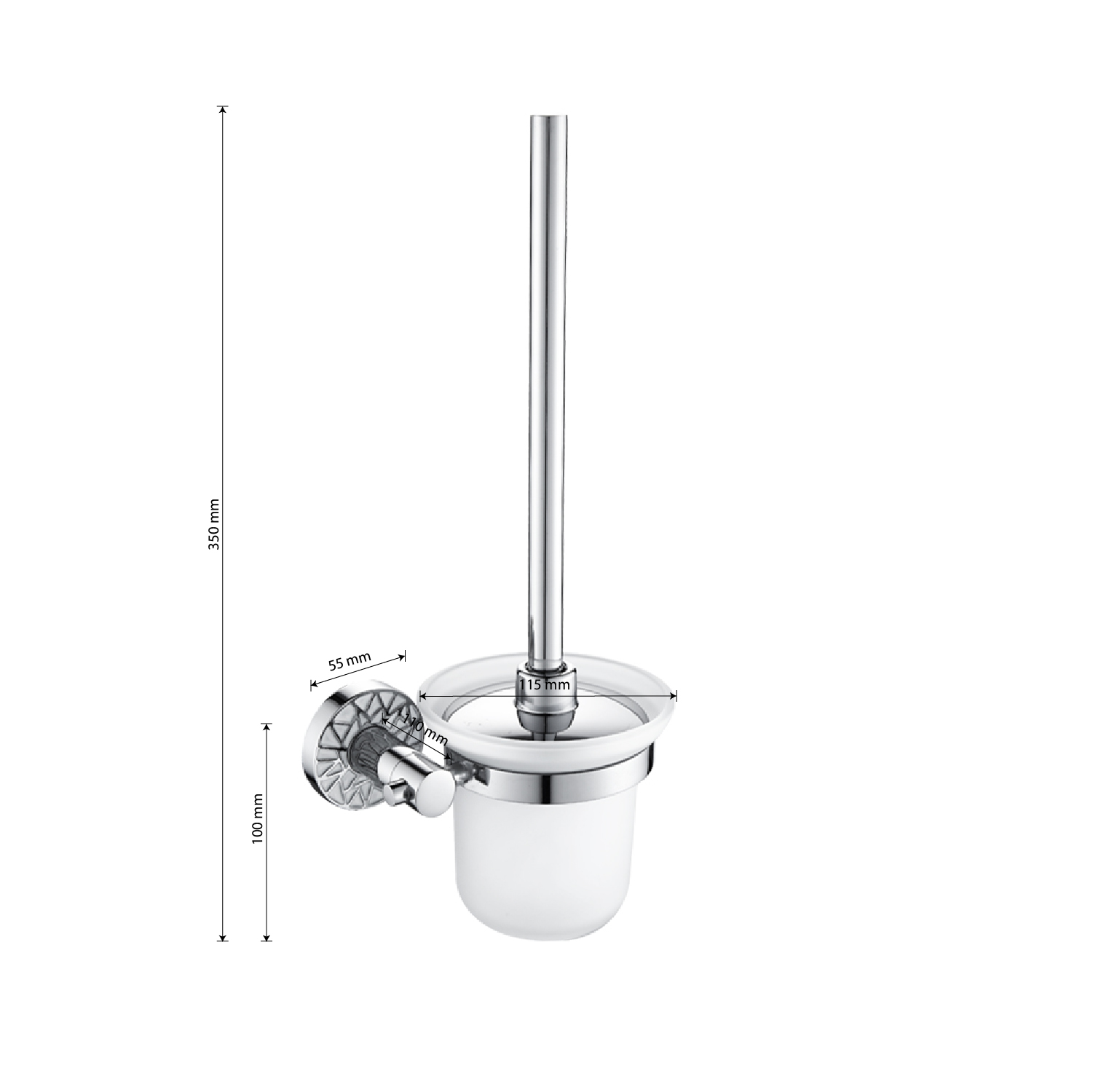 Ёршик со стеклянной матовой колбой, настенный, необходимый аксессуар любой туалетной комнаты. Приспособление обеспечит порядок и правильное хранение гигиенических принадлежностей. Изделие выполнено из стекла и металла с хромированным покрытием. Жесткая щетина ерша гарантирует отличный результат очистки санузлов. Такое сочетание материалов делает конструкцию прочной и долговечной. Держатель колбы легко и удобно крепится к стене при помощи фурнитуры входящей в комплект поставки. Материал изготовления — ЦАМ (цинк-алюминий-медь) + нержавеющая сталь. Имеет специальное хромированное покрытие, которое защищает изделие от влаги и придает ему блестящий внешний вид. Размеры: высота 350 мм, высота колбы 100 мм, диаметр колбы 115 мм, основание 55 мм. Вес - 0,900 кг, объём - 0,00700 м3.