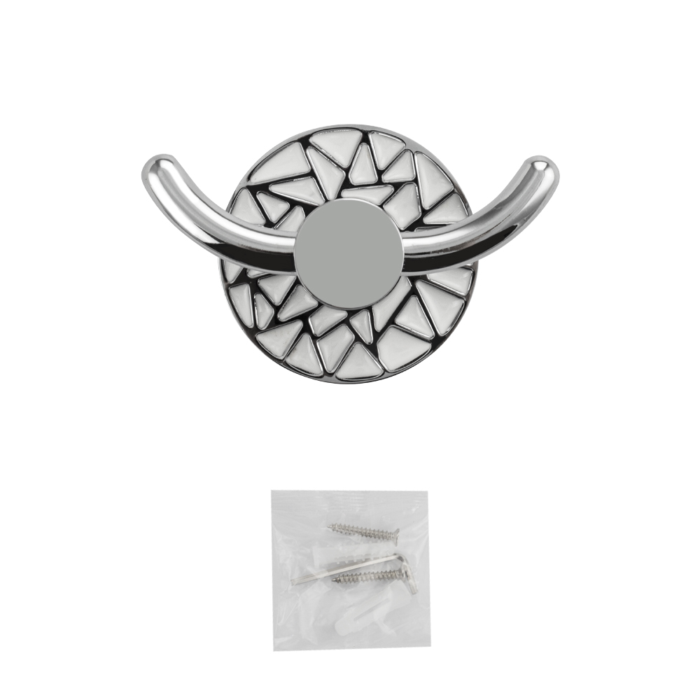 Крючок двойной для полотенец, металлический, хромированный. Материал изготовления — ЦАМ (цинк-алюминий-медь) + нержавеющая сталь. Хромированное покрытие очень стойко переносит истирания и обеспечивает зеркальный блеск изделия. На крючке с легкостью можно размещать вещи для сушки или вешать, как полотенца, так и одежду перед походом в душ. Идеально подойдет не только для ванной, но и для кухни, а также для дачи или гаража - при необходимости на держатель можно вешать любые предметы. Изделие крепится к стене с помощью дюбелей и саморезов (входят в комплект). Размеры: ширина 80 мм, основание 55 мм, глубина 60 мм. Вес - 0,250 кг, объём - 0,00054 м3.