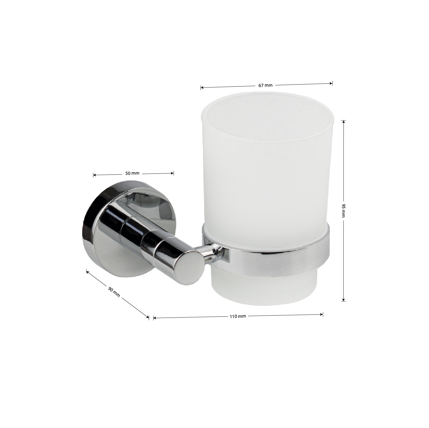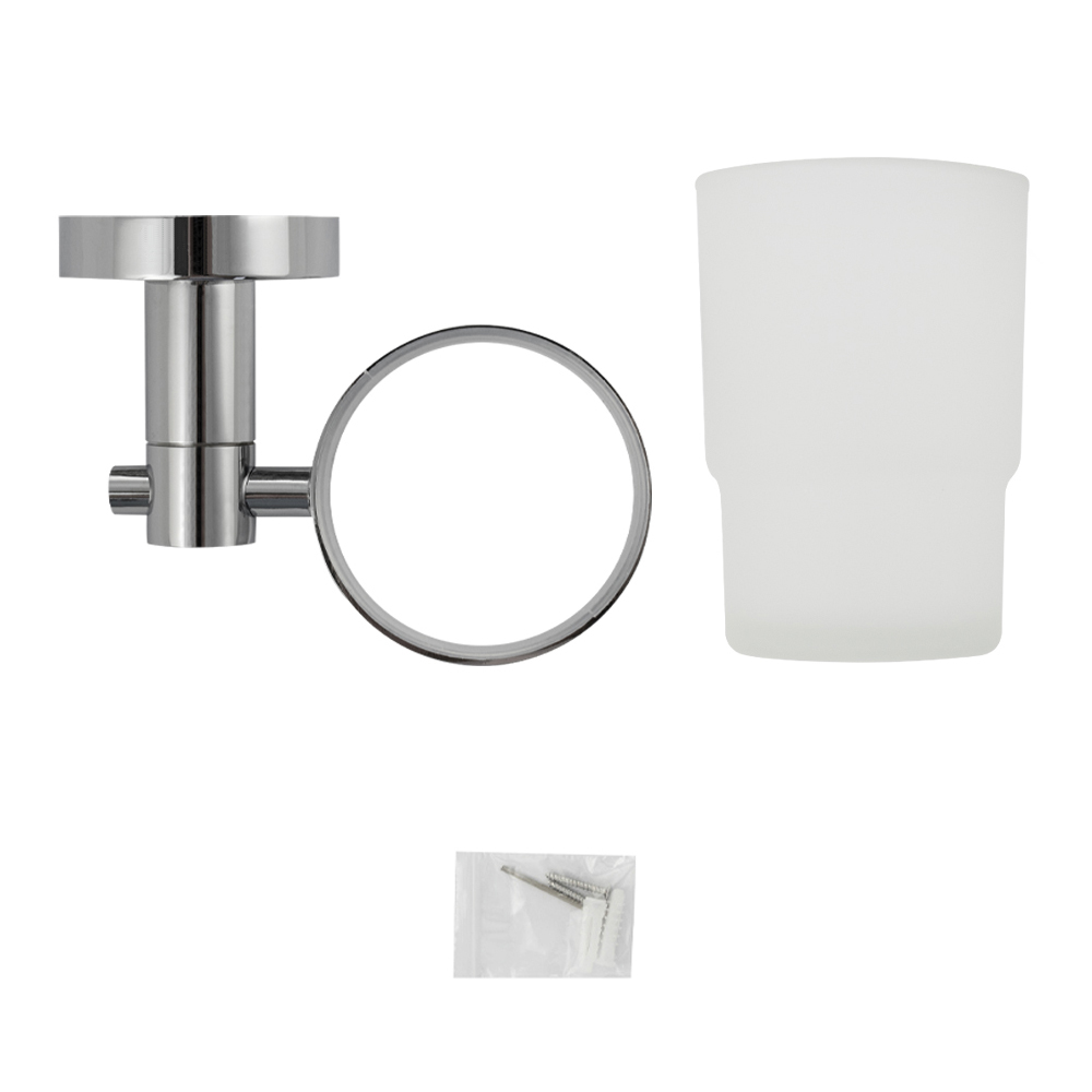 Стакан стеклянный с креплением к стене, правильной формы на основании, хромированный. Изделие выполнено из матового стекла и металла с хромированным покрытием. Материал изготовления — ЦАМ (цинк-алюминий-медь) + нержавеющая сталь. Хромированное покрытие очень стойко переносит истирания и обеспечивает зеркальный блеск изделия. Идеально подойдет не только для ванной, но и для кухни. Изделие крепится к стене с помощью дюбелей и саморезов (входят в комплект). Габаритные размеры: высота стакана 95 мм, диаметр 67 мм, ширина 110 мм, глубина 90 мм, диаметр посадочного седла 50 мм. Вес - 0,41 кг, объём - 0,00149 м3.