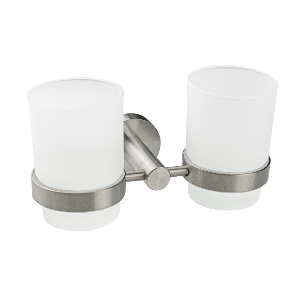 Стакан + стакан стеклянный с креплением к стене, правильной формы на основании. Изделие выполнено из матового стекла и металла с матовым покрытием. Изготовлен из прочной нержавеющей стали марки SUS 304 с матовым покрытием, которое придает безупречный стильный вид и долговечность. Идеально подойдет не только для ванной, но и для кухни. Изделие крепится к стене с помощью дюбелей и саморезов (входят в комплект). Габаритные размеры: высота стакана 95 мм, диаметр 65 мм, ширина 180 мм, глубина 80 мм, основание 50 мм. Вес - 0,800 кг, объём - 0,00347 м3.