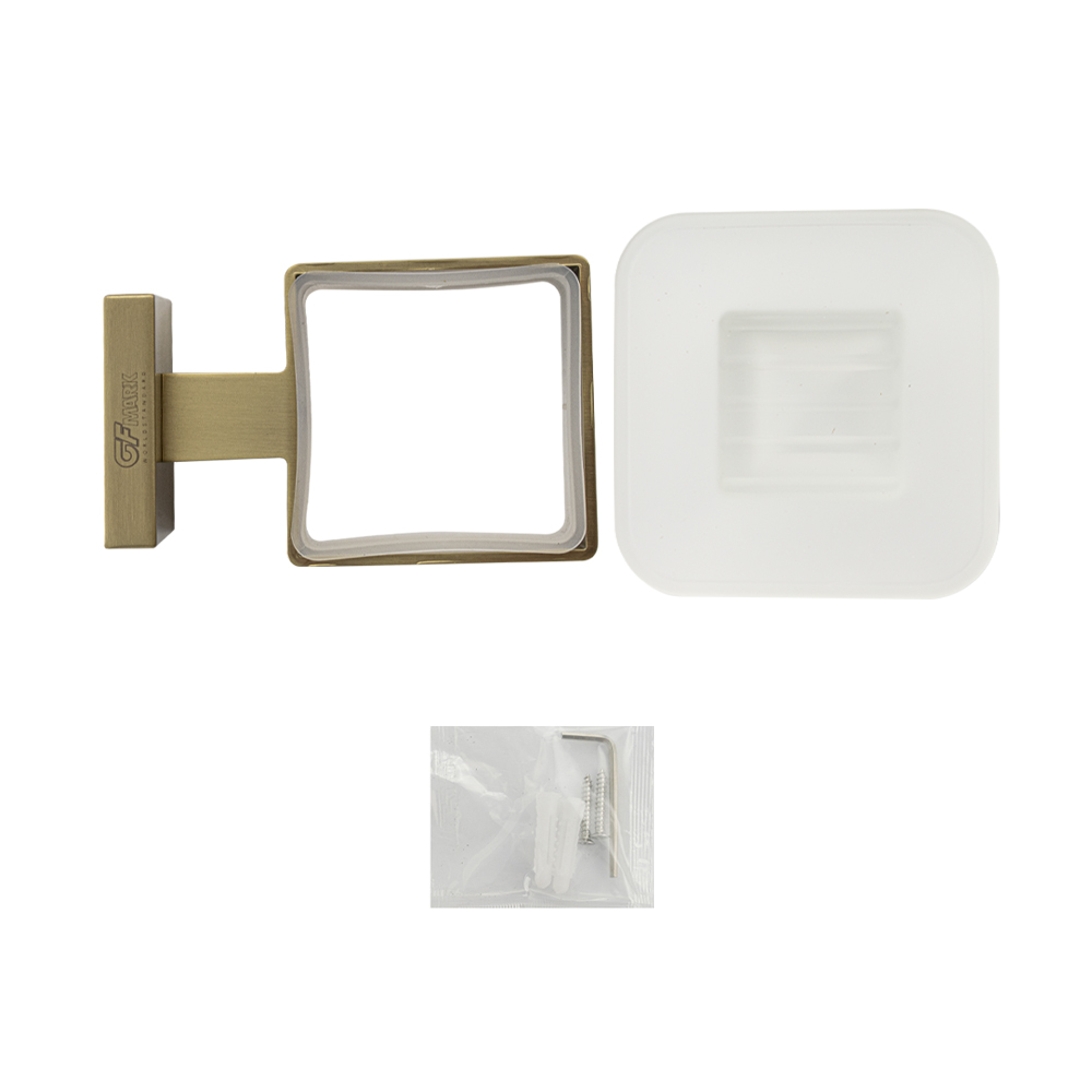 Мыльница подвесная, стеклянная с креплением к стене, квадратной формы на основании. Изделие выполнено из матового стекла и металла. Изготовлена из прочной нержавеющей стали марки SUS 304 с матовым золотым покрытием, которое придает безупречный стильный вид и долговечность. Идеально подойдет не только для ванной, но и для кухни. Изделие крепится к стене с помощью дюбелей и саморезов (входят в комплект). Габаритные размеры: высота мыльницы 50 мм, мыльница 105*105 мм, общая длина 115 мм, посадочное седло 50*50 мм. Вес - 0.5 кг, объём - 0.00144 м3.