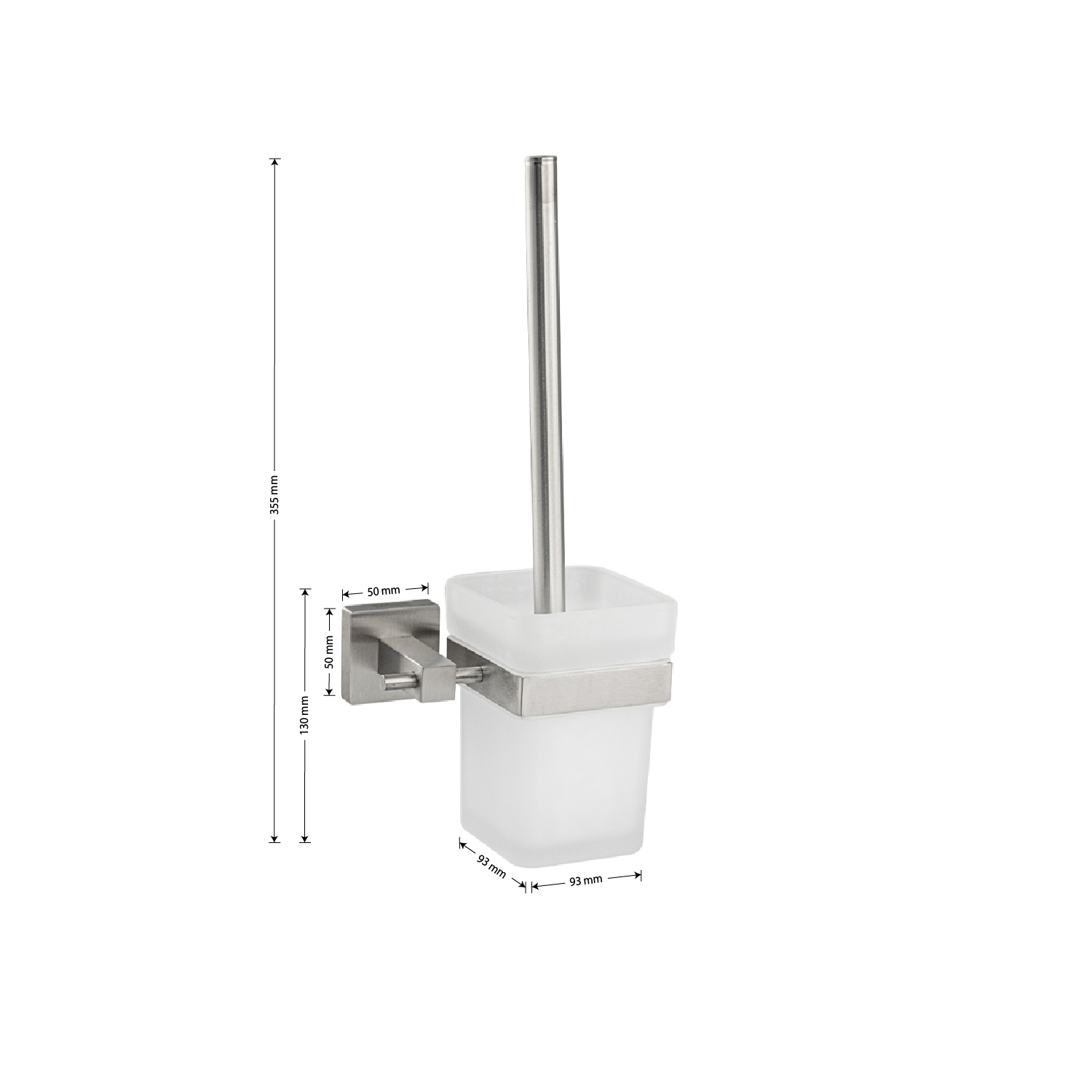 Ёршик со стеклянной матовой колбой, настенный — необходимый аксессуар любой туалетной комнаты. Приспособление обеспечит порядок и правильное хранение гигиенических принадлежностей. Изделие выполнено из стекла и металла с матовым покрытием. Жесткая щетина ерша гарантирует отличный результат очистки санузлов. Такое сочетание материалов делает конструкцию прочной и долговечной. Держатель колбы легко и удобно крепится к стене при помощи фурнитуры входящей в комплект поставки. Изготовлен из прочной нержавеющей стали марки SUS 304 с матовым покрытием, которое придает безупречный стильный вид и долговечность. Габаритные размеры: высота 355 мм, высота колбы 130 мм, колба 93*93 мм, основание 50*50 мм. Вес - 1.1 кг, объём - 0.00548 м3.