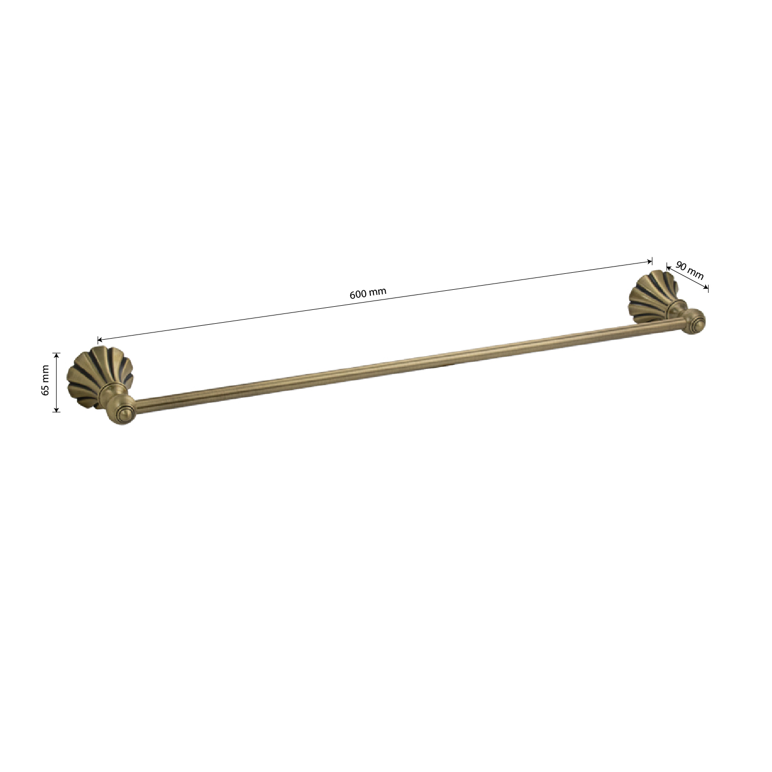 Держатель для полотенец металлический, прямой. Материал изготовления — латунь. Бронзовое матовое покрытие очень стойко переносит истирания и обеспечивает безупречный стильный вид изделия и долговечность. На держателе с легкостью можно размещать вещи для сушки или вешать, как полотенца, так и одежду перед походом в душ. Идеально подойдет не только для ванной, но и для кухни, а также для дачи или гаража - при необходимости на держатель можно вешать любые предметы. Изделие крепится к стене с помощью дюбелей и саморезов (входят в комплект). Габаритные размеры: длина 600 мм, диаметр посадочного седла 65 мм, глубина 90 мм. Вес - 0,600 кг, объём - 0,00409 м3.