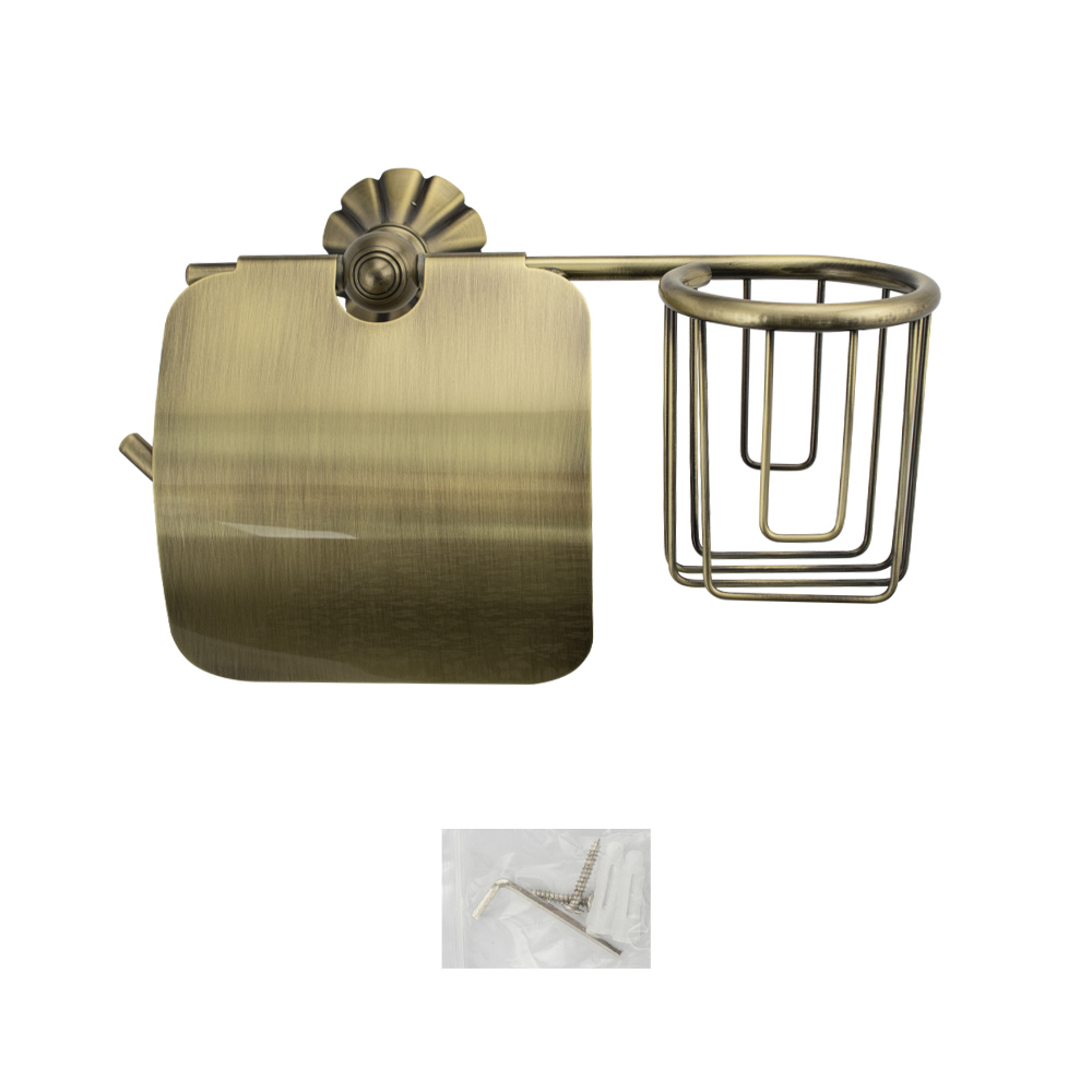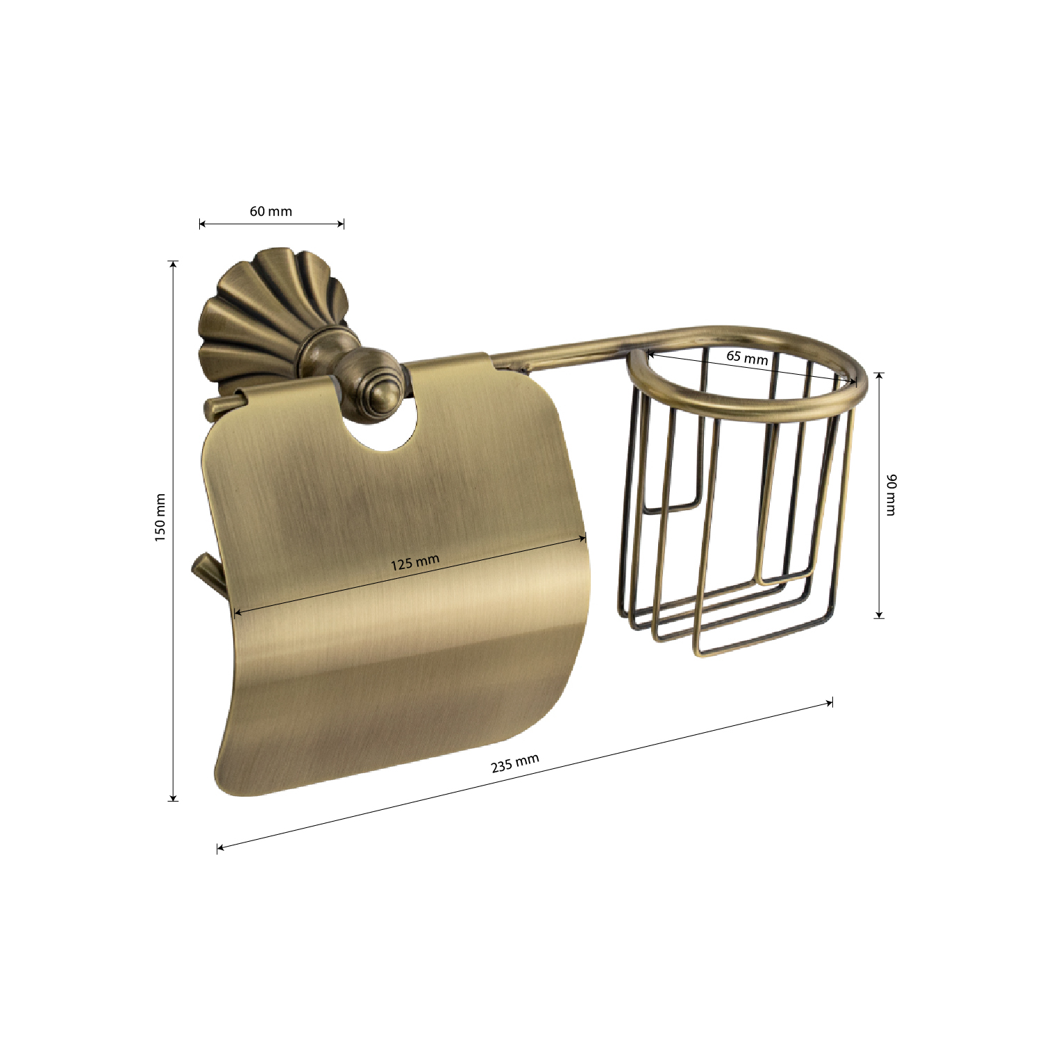 Держатель освежителя воздуха и туалетной бумаги с крышкой, металлический, стильный и функциональный элемент санузла. Благодаря наличию крышки рулон будет защищен от попадания воды. Держатель легко и удобно крепится к стене при помощи фурнитуры входящей в комплект поставки. Материал изготовления — латунь. Имеет специальное бронзовое, матовое покрытие, которое защищает изделие от влаги и придает ему безупречный стильный вид и долговечность. Удобно чистить и легко менять рулоны и аэрозоли. Габаритные размеры: ширина 235 мм, высота 150 мм, основание 60 мм. Вес - 0,800 кг, объём - 0,00487 м3
