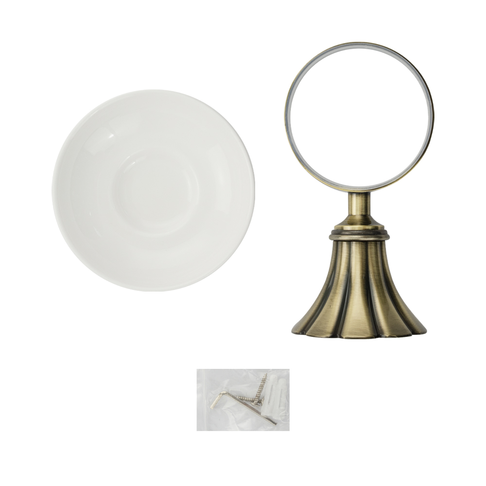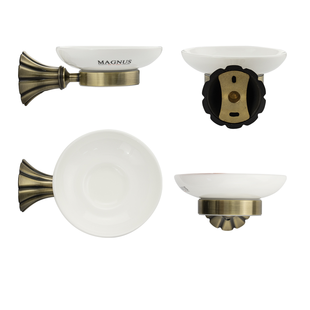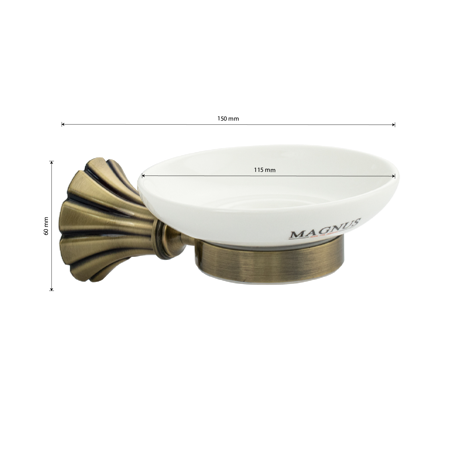 Мыльница подвесная, керамическая с креплением к стене, круглой формы на основании. Изделие выполнено из белой керамики и металла. Материал изготовления — латунь. Имеет специальное бронзовое, матовое покрытие, которое защищает изделие от влаги и придает ему безупречный стильный вид и долговечность. Идеально подойдет не только для ванной, но и для кухни. Изделие крепится к стене с помощью дюбелей и саморезов (входят в комплект). Габаритные размеры: глубина 150 мм, основание 60 мм, диаметр мыльницы 115 мм. Вес - 0,600 кг, объём - 0,00185 м3.
