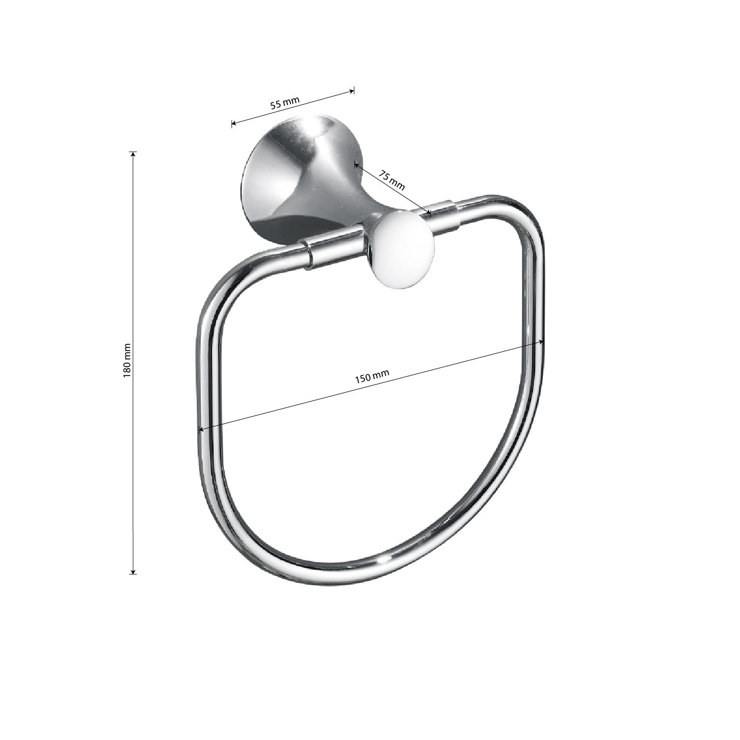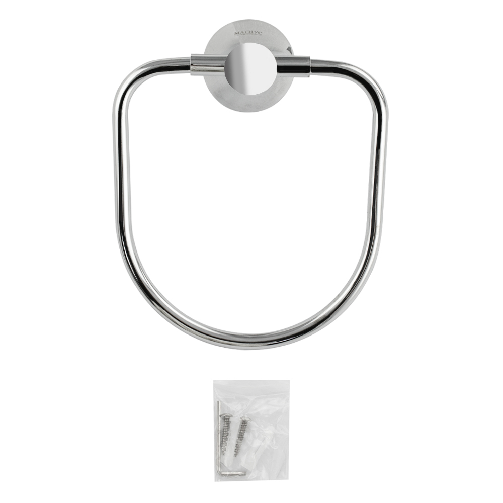 Держатель для полотенец металлический, хромированный, в виде кольца. Материал изготовления — ЦАМ (цинк-алюминий-медь) + нержавеющая сталь. Хромированное покрытие очень стойко переносит истирания и обеспечивает зеркальный блеск изделия. На держателе с легкостью можно размещать любые полотенца для сушки. Идеально подойдет не только для ванной, но и для кухни, а также для дачи или гаража - при необходимости на держатель можно вешать любые предметы. Изделие крепится к стене с помощью дюбелей и саморезов (входят в комплект). Размеры: высота 180 мм, ширина 150 мм, глубина 75 мм, основание 55 мм. Вес - 0,400 кг, объём - 0,00210 м3.