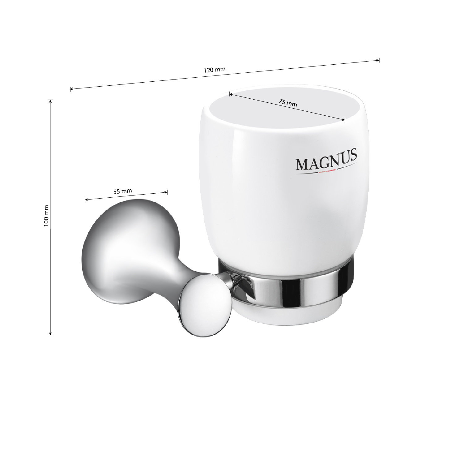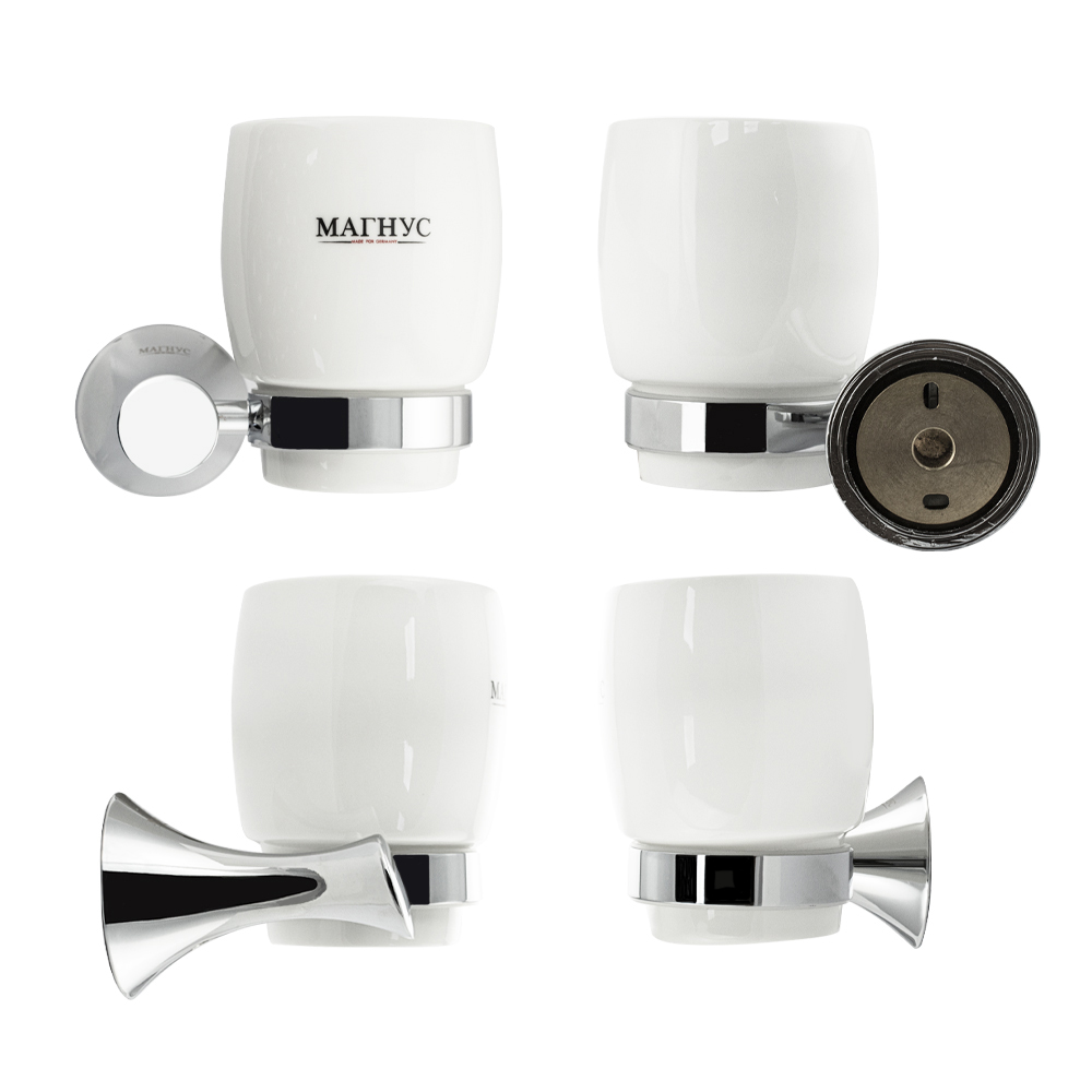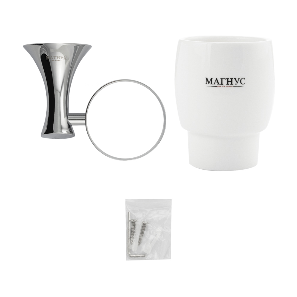 Стакан керамический с креплением к стене, правильной формы на основании, хромированный. Изделие выполнено из белой керамики и металла с хромированным покрытием. Материал изготовления — ЦАМ (цинк-алюминий-медь) + нержавеющая сталь. Хромированное покрытие очень стойко переносит истирания и обеспечивает зеркальный блеск изделия. Идеально подойдет не только для ванной, но и для кухни. Изделие крепится к стене с помощью дюбелей и саморезов (входят в комплект). Размеры: высота стакана 100 мм, диаметр 75 мм, ширина 120 мм, основание 55 мм. Вес - 0,600 кг, объём - 0,00180 м3.
