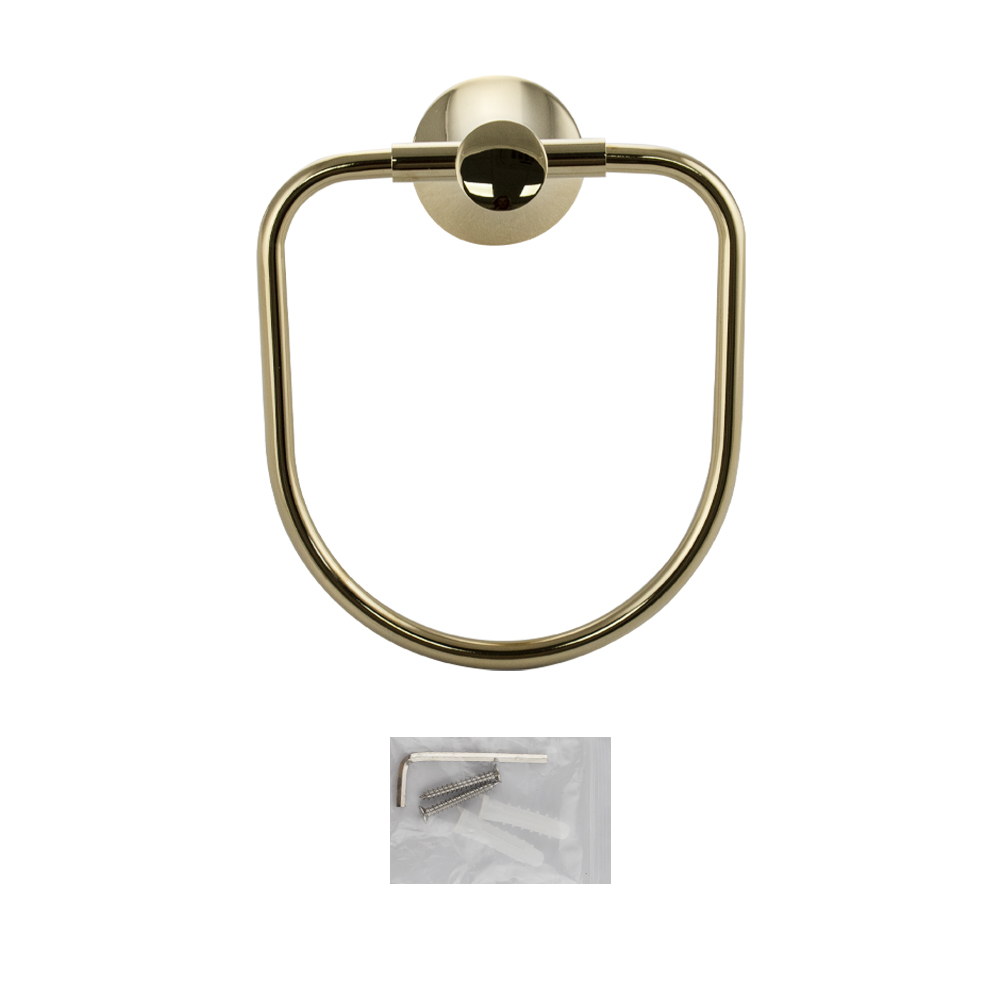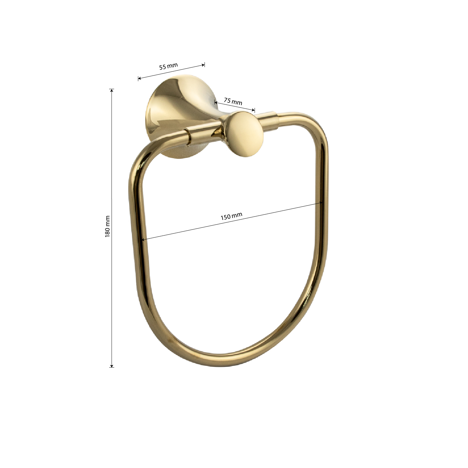 Держатель для полотенец металлический, в виде кольца, стильный и функциональный элемент санузла. Материал изготовления — нержавеющая сталь. Имеет специальное золотое, глянцевое покрытие, которое защищает изделие от влаги и придает ему безупречный стильный вид и долговечность. На держателе с легкостью можно размещать любые полотенца для сушки. Идеально подойдет не только для ванной, но и для кухни, а также для дачи или гаража - при необходимости на держатель можно вешать любые предметы. Изделие крепится к стене с помощью дюбелей и саморезов (входят в комплект). Габаритные размеры: высота 180 мм, ширина 150 мм, глубина 75 мм, основание 55 мм. Вес - 0,400 кг, объём - 0,00234 м3.