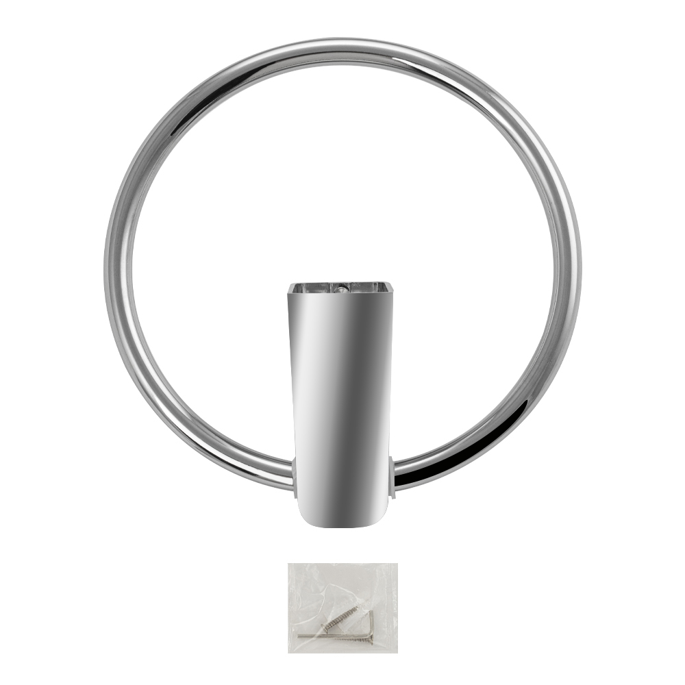 Держатель для полотенец металлический, хромированный, в виде кольца. Материал изготовления — ЦАМ (цинк-алюминий-медь) + нержавеющая сталь. Хромированное покрытие очень стойко переносит истирания и обеспечивает зеркальный блеск изделия. На держателе с легкостью можно размещать любые полотенца для сушки. Идеально подойдет не только для ванной, но и для кухни, а также для дачи или гаража, при необходимости на держатель можно вешать любые предметы. Изделие крепится к стене с помощью дюбелей и саморезов (входят в комплект). Габаритные размеры: d=145 мм, глубина 80 мм. Вес - 0,300 кг, объём - 0,00200 м3.
