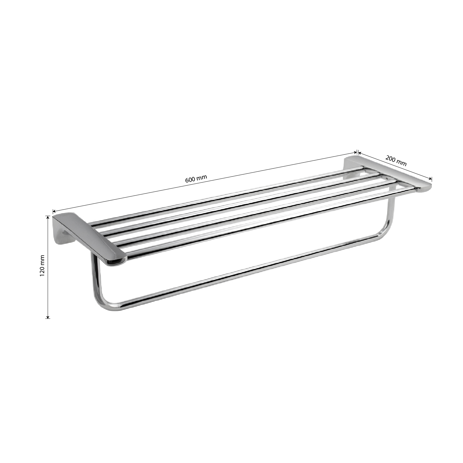 Полка для полотенца с опорой, большая, для ванной, привлекает своим современным дизайном, многофункциональностью и надежностью конструкции. Кухня, ванная, прихожая, кладовка или гардеробная - эта полка идеально подойдет везде. Металлическая полка оснащена дополнительной перекладиной. Безупречно отшлифованная нержавеющая сталь делает её устойчивой к влаге и исключает появление ржавчины. Полка для ванной функциональное и практичное решение для любого интерьера. Материал изготовления — нержавеющая сталь марки 304. Хромированное покрытие очень стойко переносит истирания и обеспечивает зеркальный блеск изделия. Идеально подойдет не только для ванной, но и для кухни. Изделие крепится к стене с помощью дюбелей и саморезов (входят в комплект). Габаритные размеры: длина 600 мм, глубина 200 мм, высота 120 мм. Вес - 1,950 кг, объём - 0,01580 м3.