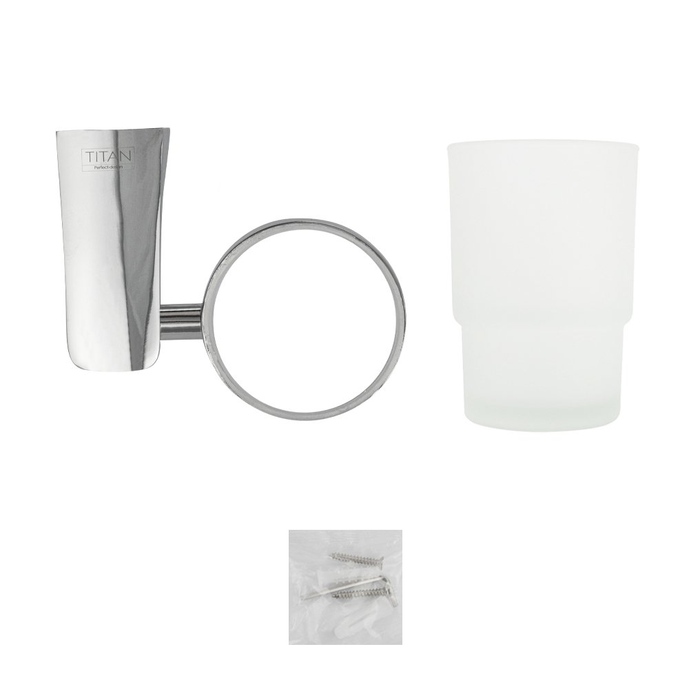 Стакан стеклянный с креплением к стене, правильной формы на основании, хромированный. Изделие выполнено из матового стекла и металла с хромированным покрытием. Материал изготовления — ЦАМ (цинк-алюминий-медь) + нержавеющая сталь. Хромированное покрытие очень стойко переносит истирания и обеспечивает зеркальный блеск изделия. Идеально подойдет не только для ванной, но и для кухни. Изделие крепится к стене с помощью дюбелей и саморезов (входят в комплект). Габаритные размеры: высота стакана 95 мм, диаметр 65 мм, ширина 115 мм, глубина 80 мм. Вес - 0,500 кг, объём - 0,00150 м3.