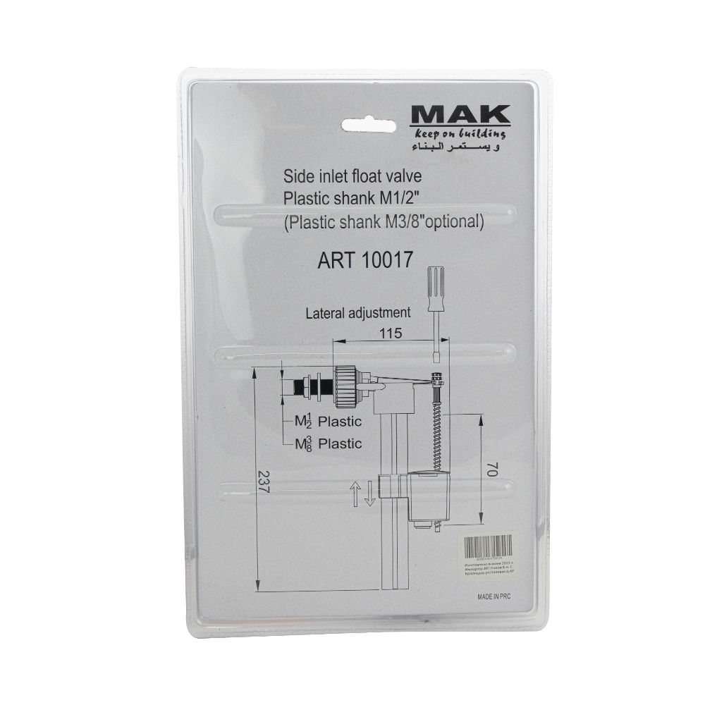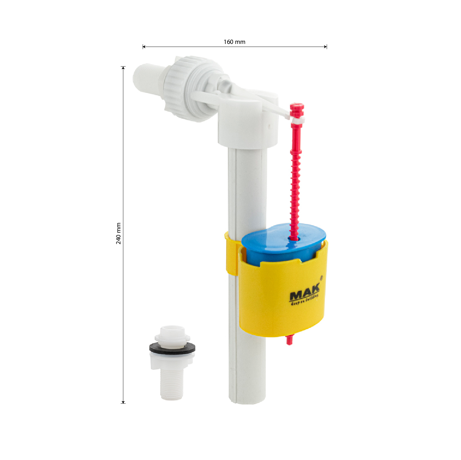 Клапан впускной с боковой подводкой из высокопрочного пластика АБС. Устройство для монтажа в смывном бачке унитаза отличается пониженным уровнем шума. Может устанавливаться в любом типе бачка с боковой подводкой для подачи воды. Габаритные размеры: высота 240 мм, ширина 160 мм, подключение 1/2, наружняя резьба. Вес - 0,300 кг, объём - 0,00390 м3.