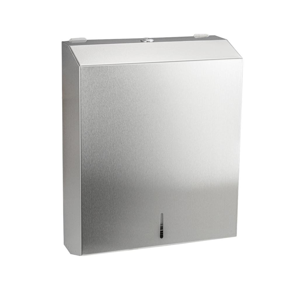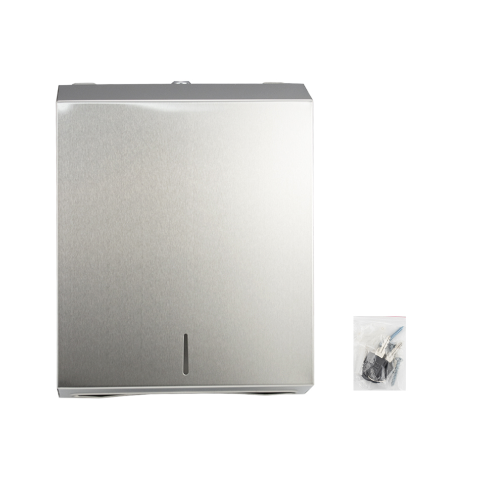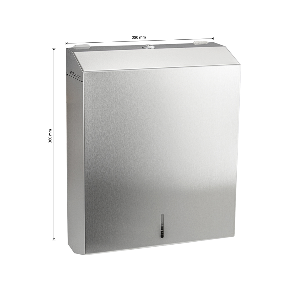 Диспенсер для бумажных полотенец Z сложения, на две пачки, с ключом из нержавеющей стали, цвет сатин. Антивандальный диспенсер вместимостью 300 - 500 листов. Прямоугольной формы, компактный, вместительный и надежный. Окно - индикатор позволяет легко осуществлять контроль за наличием полотенец, а встроенный замок обезопасит от кражи расходного материала. Привлекательный дизайн подойдет для самых разных интерьеров. Габаритные размеры: высота 360 мм, ширина 280 мм, глубина 90 мм. Вес - 2,0 кг, объем - 0,01392 м3.