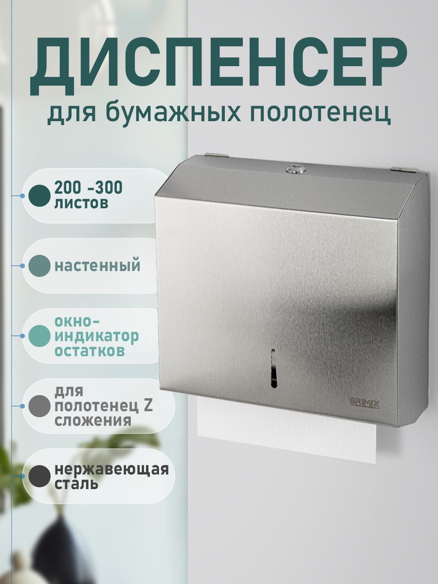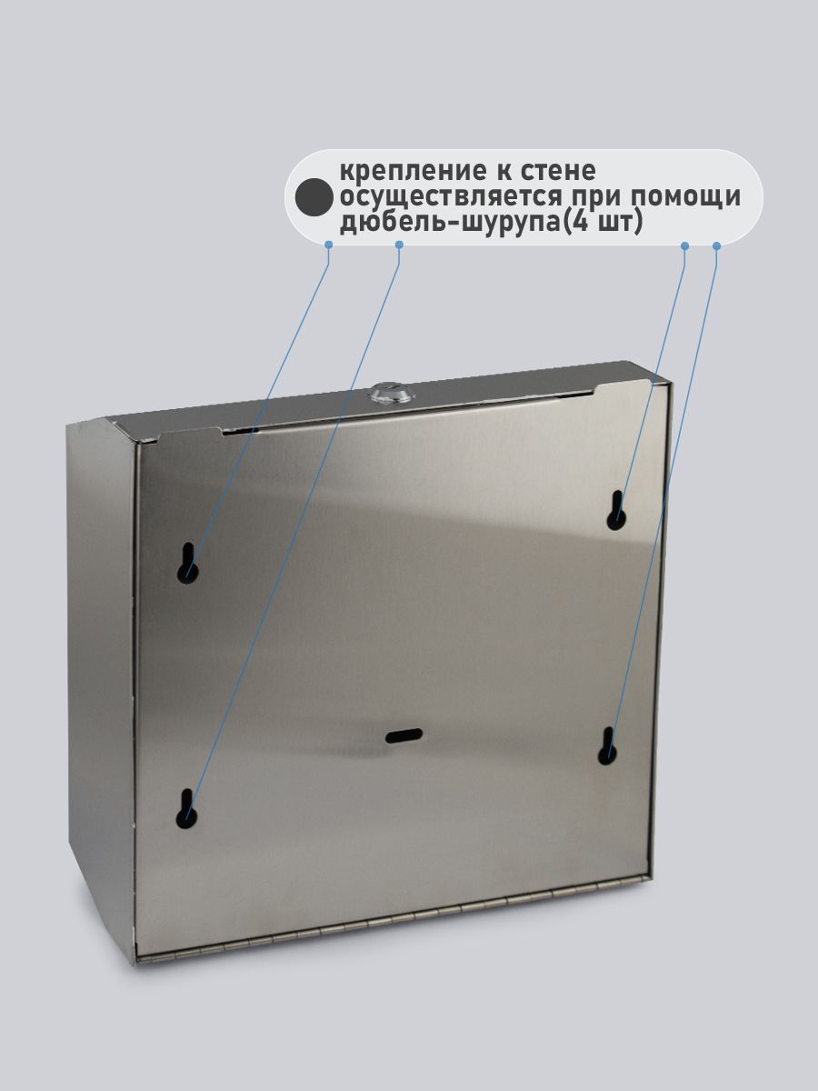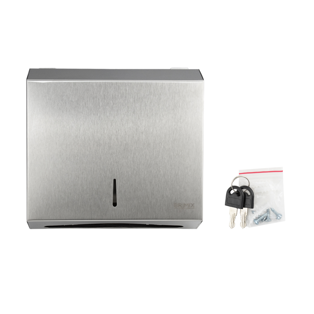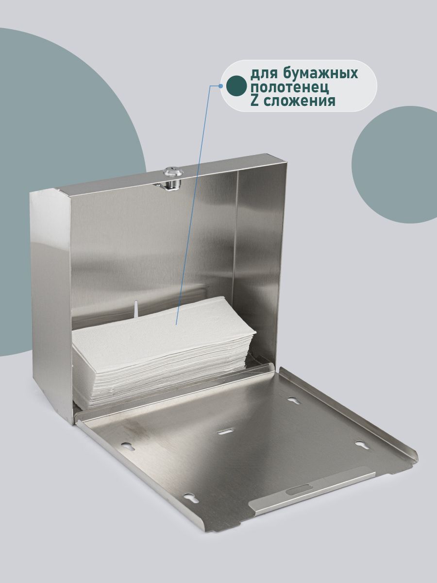 Диспенсер для бумажных полотенец Z сложения, на две пачки, с ключом, из нержавеющей стали, цвет сатин. Антивандальный диспенсер вместимостью 300 - 500 листов. Прямоугольной формы, компактный, вместительный и надежный. Окно - индикатор позволяет легко осуществлять контроль за наличием полотенец, а встроенный замок обезопасит от кражи расходного материала. Привлекательный дизайн подойдет для самых разных интерьеров. Габаритные размеры: высота 270 мм, ширина 280 мм, глубина 95 мм. Вес - 1,400 кг, объем - 0,01000 м3.