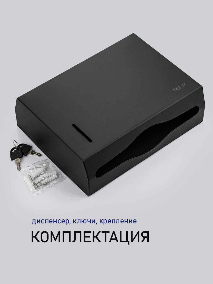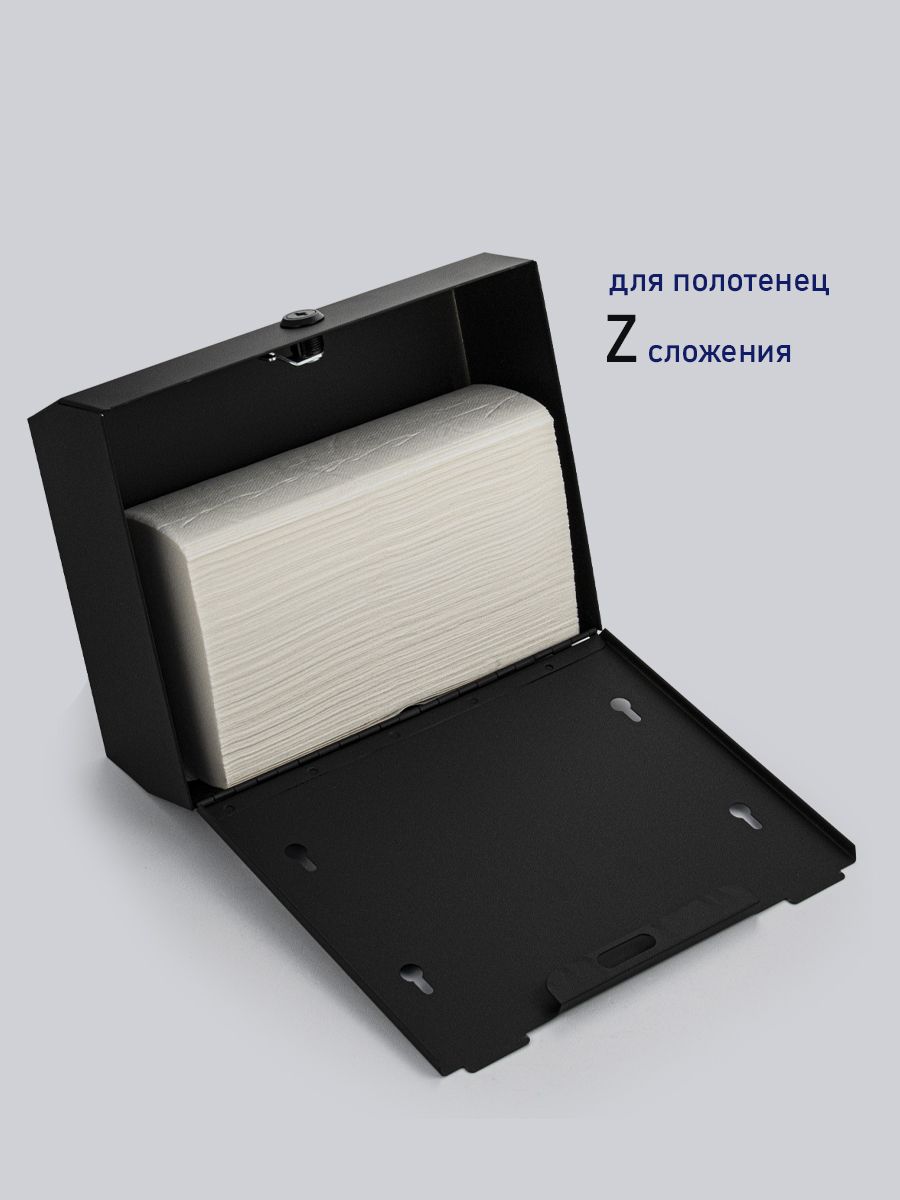 Диспенсер для бумажных полотенец Z сложения, с ключом, из нержавеющей стали, матовый, черного цвета. Антивандальный диспенсер вместимостью 200-300 листов. Прямоугольной формы, компактный, вместительный и надежный. Окно - индикатор позволяет легко осуществлять контроль за наличием полотенец, встроенный замок обезопасит от кражи расходного материала. Привлекательный дизайн подойдет для самых разных интерьеров. Габаритные размеры: высота 210 мм, ширина 265 мм, глубина 80 мм. Вес - 1,15 кг, объем - 0,006 м3.