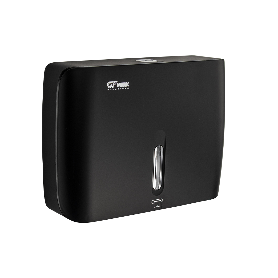 Диспенсер для бумажных полотенец Z сложения, на две пачки, с ключом, черного цвета, из высокопрочного пластика АБС. Антивандальный диспенсер вместимостью 300 - 500 листов. Прямоугольной формы компактный, вместительный и надежный. Окно-индикатор позволяет легко осуществлять контроль за наличием полотенец, а встроенный замок обезопасит от кражи расходного материала. Привлекательный дизайн подойдет для самых разных интерьеров. Габаритные размеры: высота 200 мм, ширина 270 мм, глубина 90 мм. Вес - 0,800 кг, объем - 0,00700 м3.