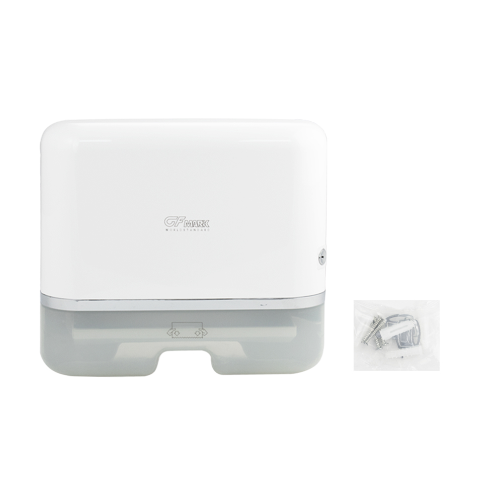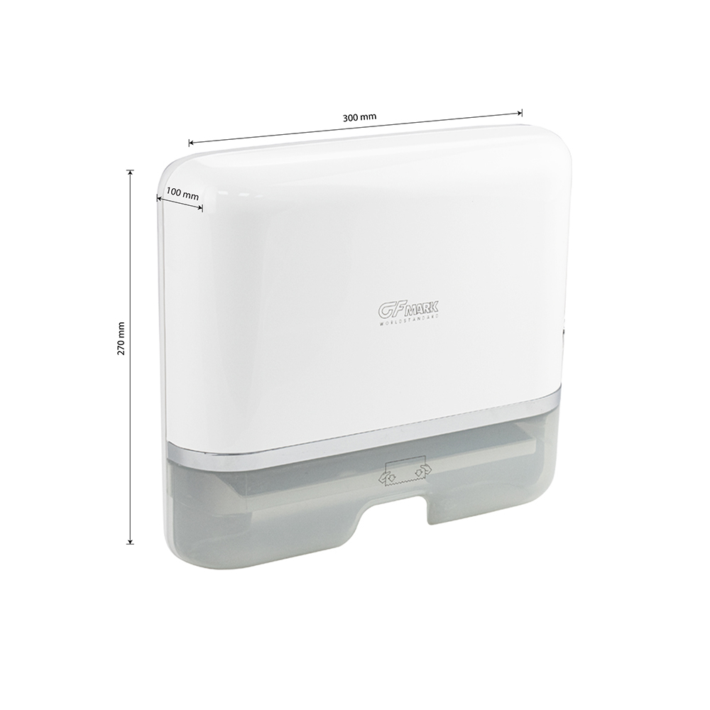 Диспенсер для бумажных полотенец Z и V сложения, на две пачки, с ключом, белый, из высокопрочного пластика АБС. Антивандальный, диспенсер вместимостью 300 - 500 листов. Прямоугольной формы компактный, вместительный и надежный. Окно - индикатор позволяет легко осуществлять контроль за наличием полотенец, а встроенный замок обезопасит от кражи расходного материала. Привлекательный дизайн подойдет для самых разных интерьеров. Ультратонкий диспенсер обеспечивает гигиеничный поштучный отбор. Большое смотровое окошко позволяет контролировать наличие полотенец. Габаритные размеры: высота 270 мм, ширина 300 мм, глубина 100 мм. Вес - 1,0 кг, объем - 0,00955 м3.