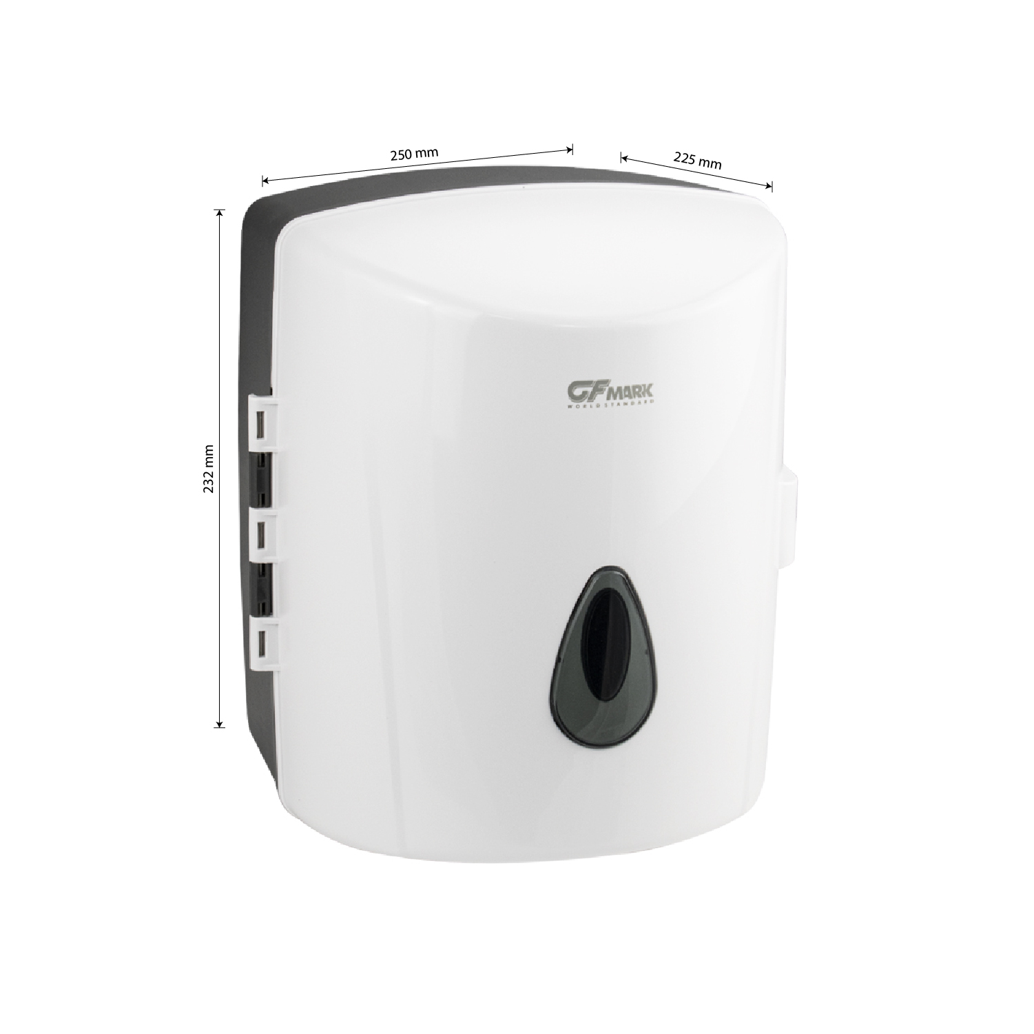 Диспенсер рулонных бумажных полотенец с центральной вытяжкой с глазком - капля. Материал изготовления - пластик АБС . Габаритные размеры: высота 322, ширина 250 мм, глубина 225 мм. Вес 1,625 кг, объем 0,02200 м3.