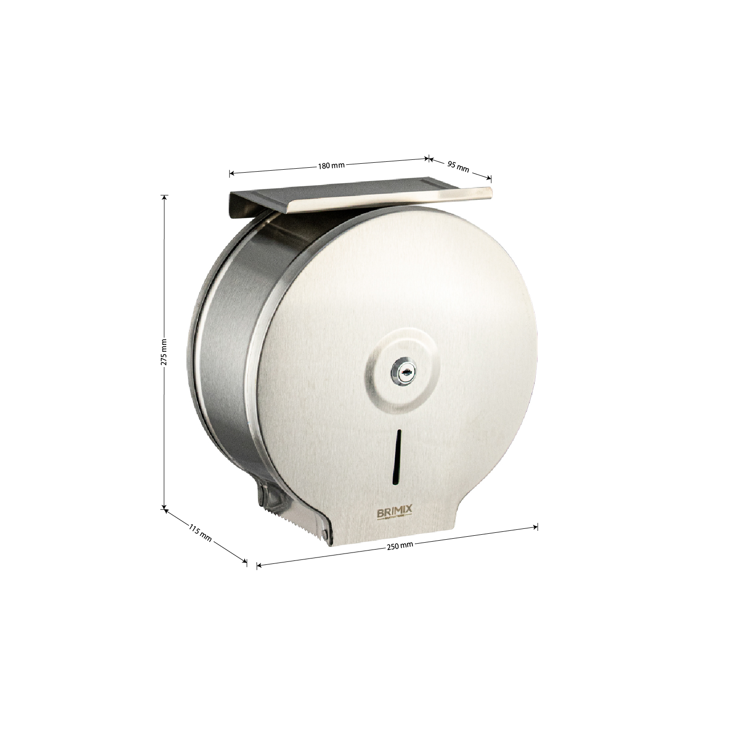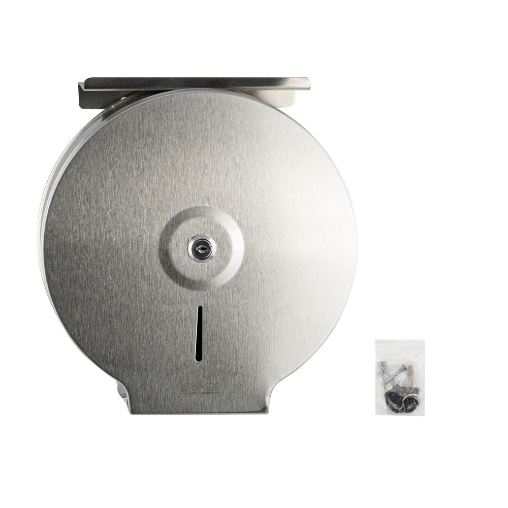 Диспенсер для туалетной бумаги - барабан, премиум, с полочкой и ключем. Антивандальный корпус диспенсера изготовлен из нержавеющей стали. Предназначен для подачи профессиональной туалетной бумаги в рулонах с намоткой до 200 м. Обеспечивает высокий уровень гигиены и комфортную подачу туалетной бумаги. Имеется окошко для контроля остатка расходных материалов и зубцы для удобного отрывания бумаги. Сочетается с расходными материалами других производителей. Оборудован самозахлопывающимся замком с ключом. В комплект входят крепежные материалы для установки. Преимущества диспенсера для туалетной бумаги - гигиеничность. Расходные материалы находятся внутри корпуса, их не касаются руки пользователей, на них не попадает грязь и капли воды. Стильный и элегантный корпус диспенсера прекрасно впишется в интерьер любого помещения. Легкость и простота в эксплуатации. Габаритные размеры: высота 275 мм, ширина барабана 250 мм, глубина барабана 115 мм, ширина полки 180 мм, глубина полки 95 мм. Вес - 1,50 кг, объем - 0,00912 м