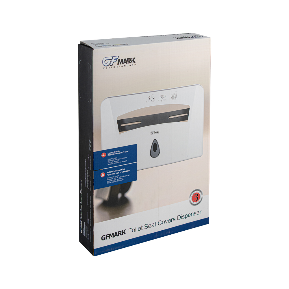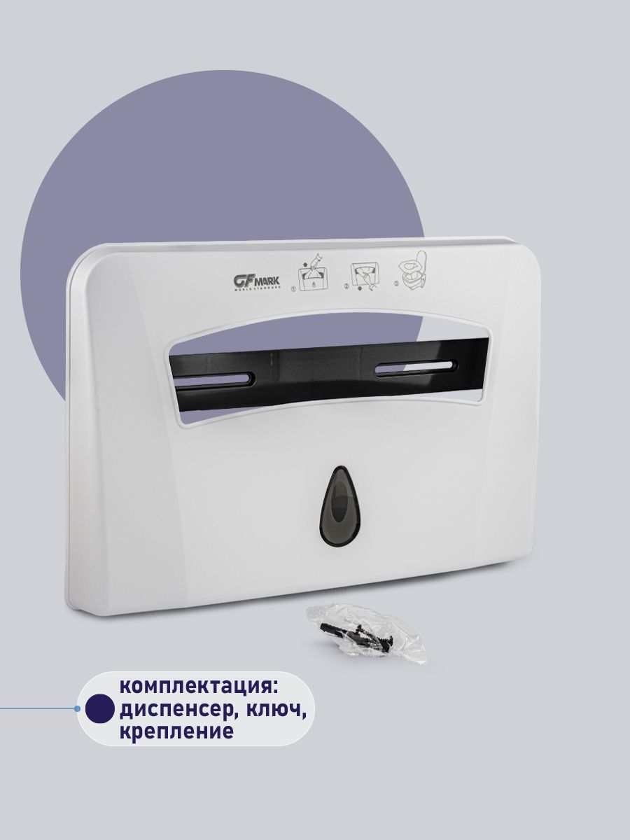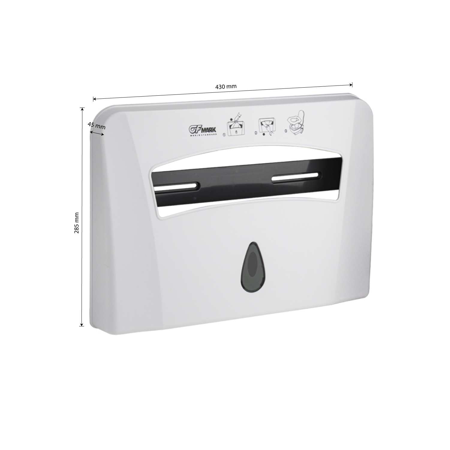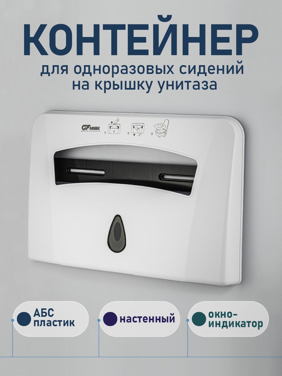 Контейнер для одноразовых сидений на крышку унитаза, пластиковый, белый, с глазком. Предназначен для удобной подачи индивидуальных бумажных покрытий на унитаз. Подходит для использования в туалетных комнатах офисов, торговых центров, аэропортов, вокзалов, ресторанов и т.д. Изготовлен из ударопрочного пластика АВS. Подходят любые накладки двойного сложения. Удобная конструкция диспенсера. Всегда извлекается только одно одноразовое сиденье на унитаз. Легкая смена блоков расходных материалов. Габаритные размеры: высота 285 мм, ширина 430 мм, глубина 45 мм. Вес - 0,700 кг, объем - 0,00925 м3.