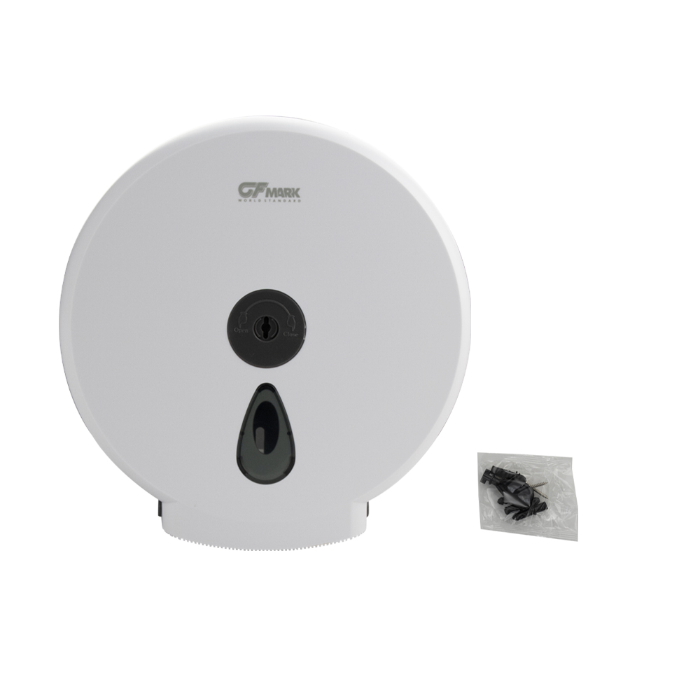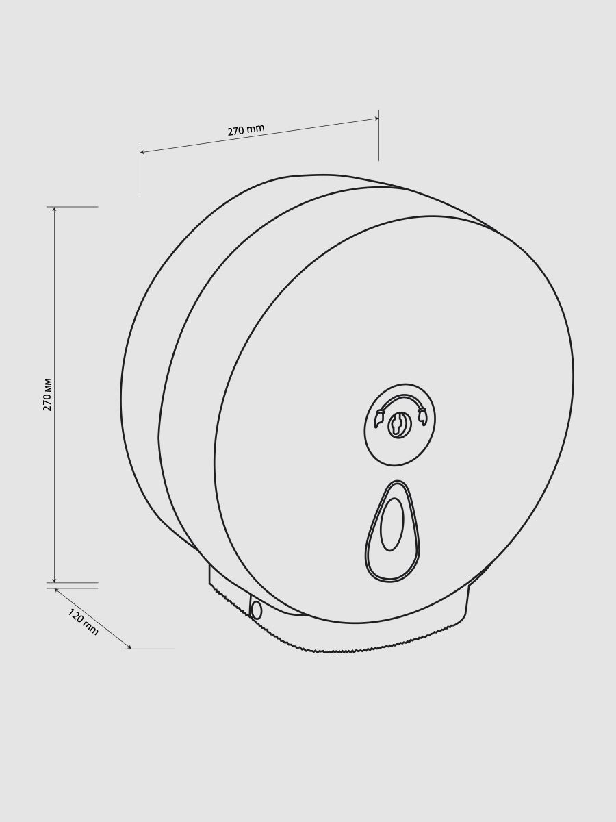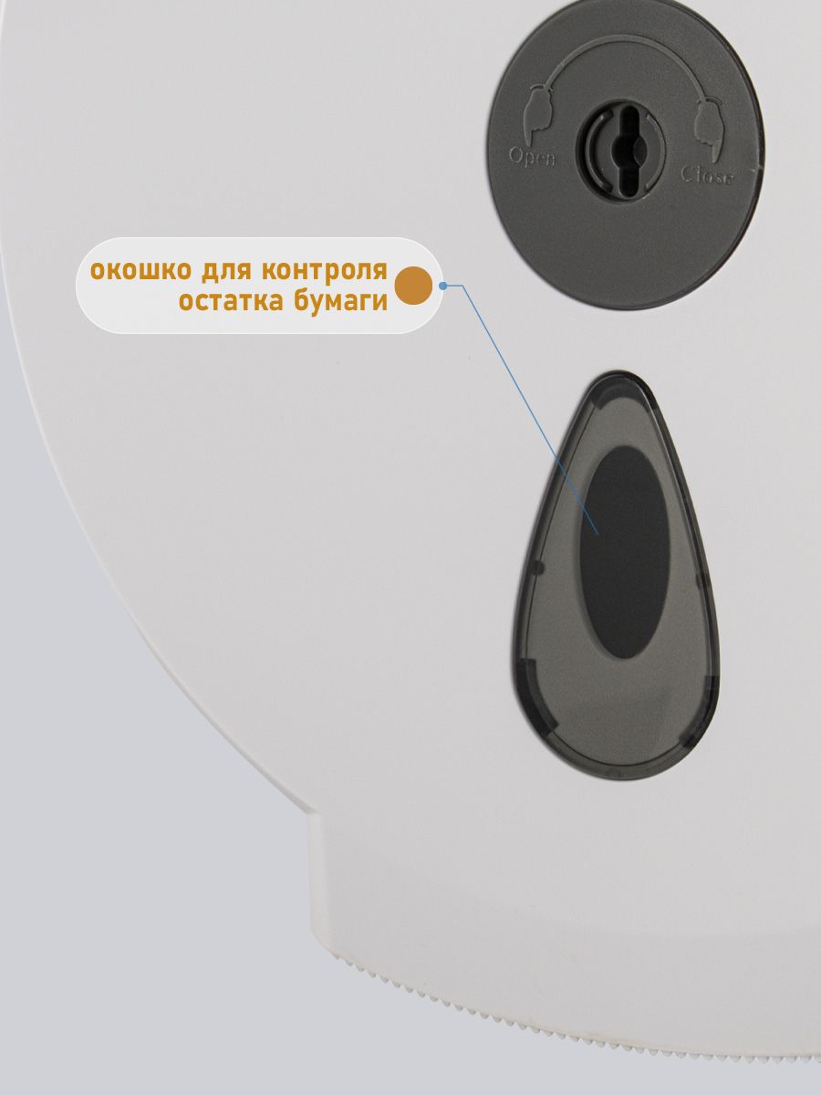 Диспенсер для туалетной бумаги - барабан, премиум, белый, с ключом. Антивандальный корпус диспенсера изготовлен из ABS-пластика. Предназначен для подачи профессиональной туалетной бумаги в рулонах с намоткой до 200 м. Обеспечивает высокий уровень гигиены и комфортную подачу туалетной бумаги. Имеется окошко для контроля остатка расходных материалов и зубцы для удобного отрывания бумаги. Сочетается с расходными материалами других производителей. Оборудован самозахлопывающимся замком с ключом. В комплект входят крепежные материалы для установки. Преимущества диспенсера для туалетной бумаги - гигиеничность. Расходные материалы находятся внутри корпуса, их не касаются руки пользователей, на них не попадает грязь и капли воды. Стильный и элегантный корпус диспенсера прекрасно впишется в интерьер любого помещения. Легкость и простота в эксплуатации. Габаритные размеры: высота 270 мм, ширина 270 мм, глубина 120 мм, втулка 65 мм. Вес - 1,000 кг, объем - 0,01132 м3.