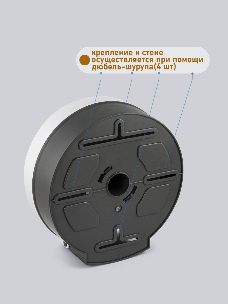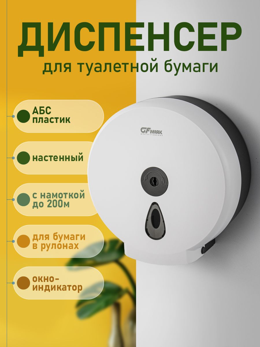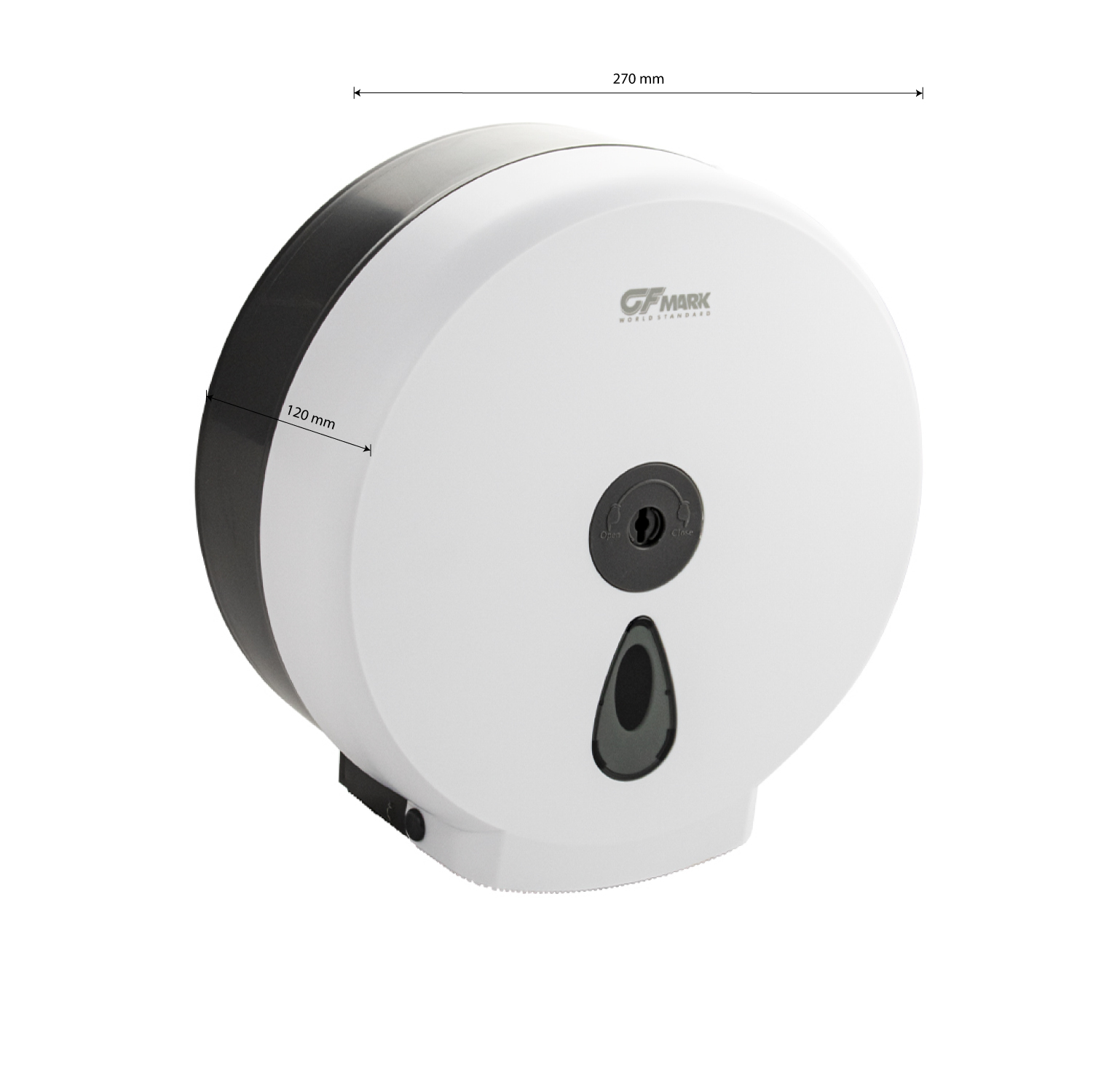 Диспенсер для туалетной бумаги - барабан, премиум, белый, с ключом. Антивандальный корпус диспенсера изготовлен из ABS-пластика. Предназначен для подачи профессиональной туалетной бумаги в рулонах с намоткой до 200 м. Обеспечивает высокий уровень гигиены и комфортную подачу туалетной бумаги. Имеется окошко для контроля остатка расходных материалов и зубцы для удобного отрывания бумаги. Сочетается с расходными материалами других производителей. Оборудован самозахлопывающимся замком с ключом. В комплект входят крепежные материалы для установки. Преимущества диспенсера для туалетной бумаги - гигиеничность. Расходные материалы находятся внутри корпуса, их не касаются руки пользователей, на них не попадает грязь и капли воды. Стильный и элегантный корпус диспенсера прекрасно впишется в интерьер любого помещения. Легкость и простота в эксплуатации. Габаритные размеры: высота 270 мм, ширина 270 мм, глубина 120 мм, втулка 65 мм. Вес - 1,000 кг, объем - 0,01132 м3.