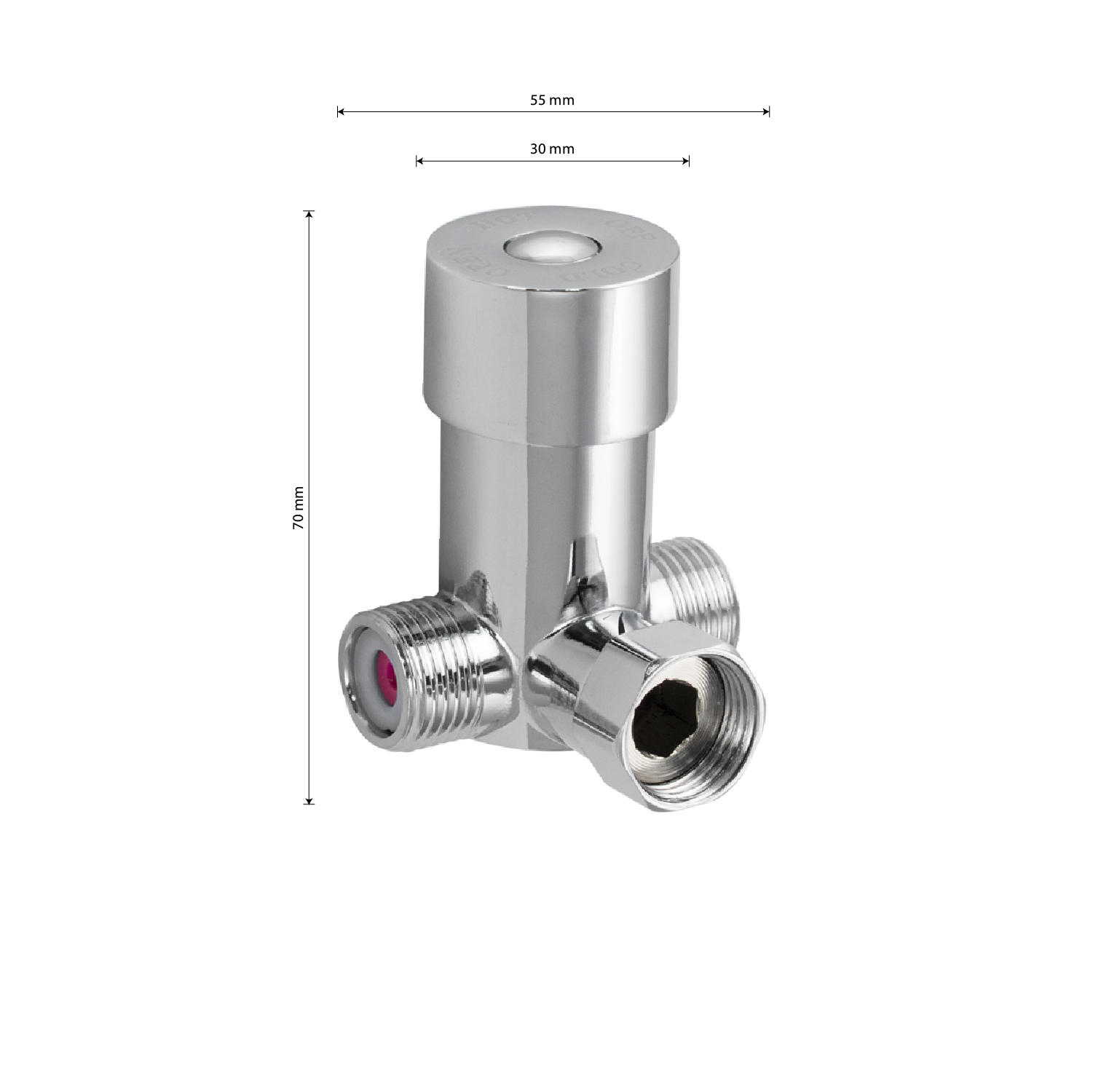 Переходник - кран 1/2 для регулировки температуры воды, для смесителей и кранов на одну воду. Габаритные размеры: высота 70 мм, ширина 30 мм, глубина 50 мм. Вес - 0,250 кг, объём - 0,00031 м3