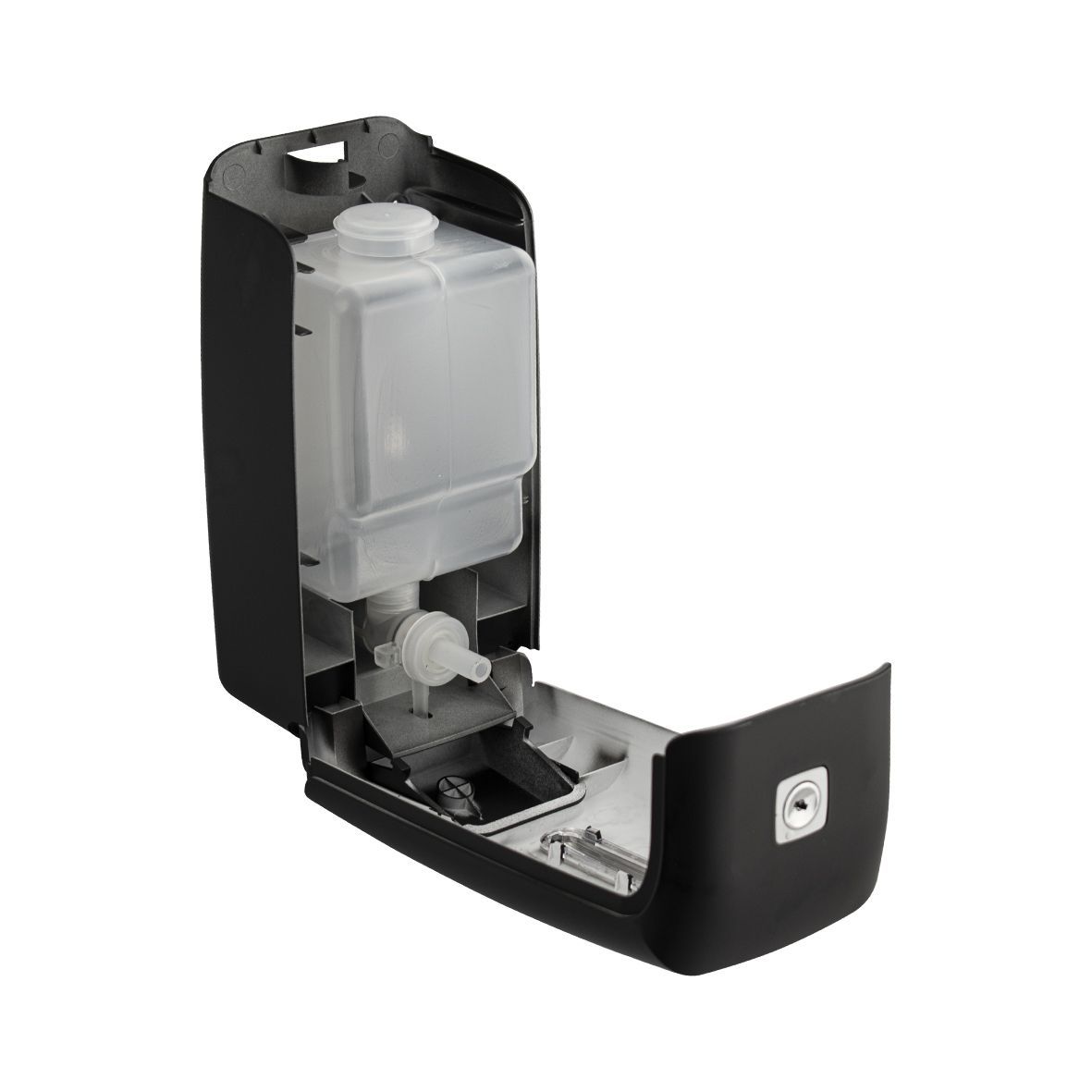 Механический дозатор для жидкого мыла предназначен для установки в любых санитарно-гигиенических комнатах. Имеет ключ и пластиковый замок. Дозатор прост в эксплуатации, достаточно нажать на кнопку для получения порции средства. Для удобства контроля за уровнем мыла на лицевой поверхности есть смотровое окно в виде капли. Корпус диспенсера изготовлен из прочного пластика АБС черного цвета, который выдерживает различные механические воздействия. В резервуар емкостью 800 мл можно заливать как жидкое мыло, так и прочие средства. Разместив диспенсер на стене, достаточно время от времени проверять заполненность резервуара. Иного ухода он не требует, не нуждается в замене батареек. Это отличное решение как для частных владений, так и для гостиниц, кафе, столовых и прочих общественных мест. Габаритные размеры: высота 230 мм, ширина 115 мм, глубина 115 мм. Вес - 0,600 кг, объем - 0,0045 м3
