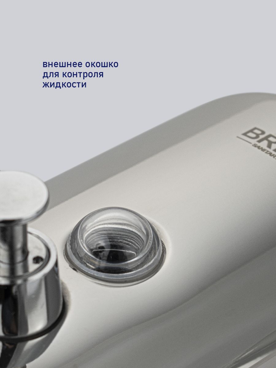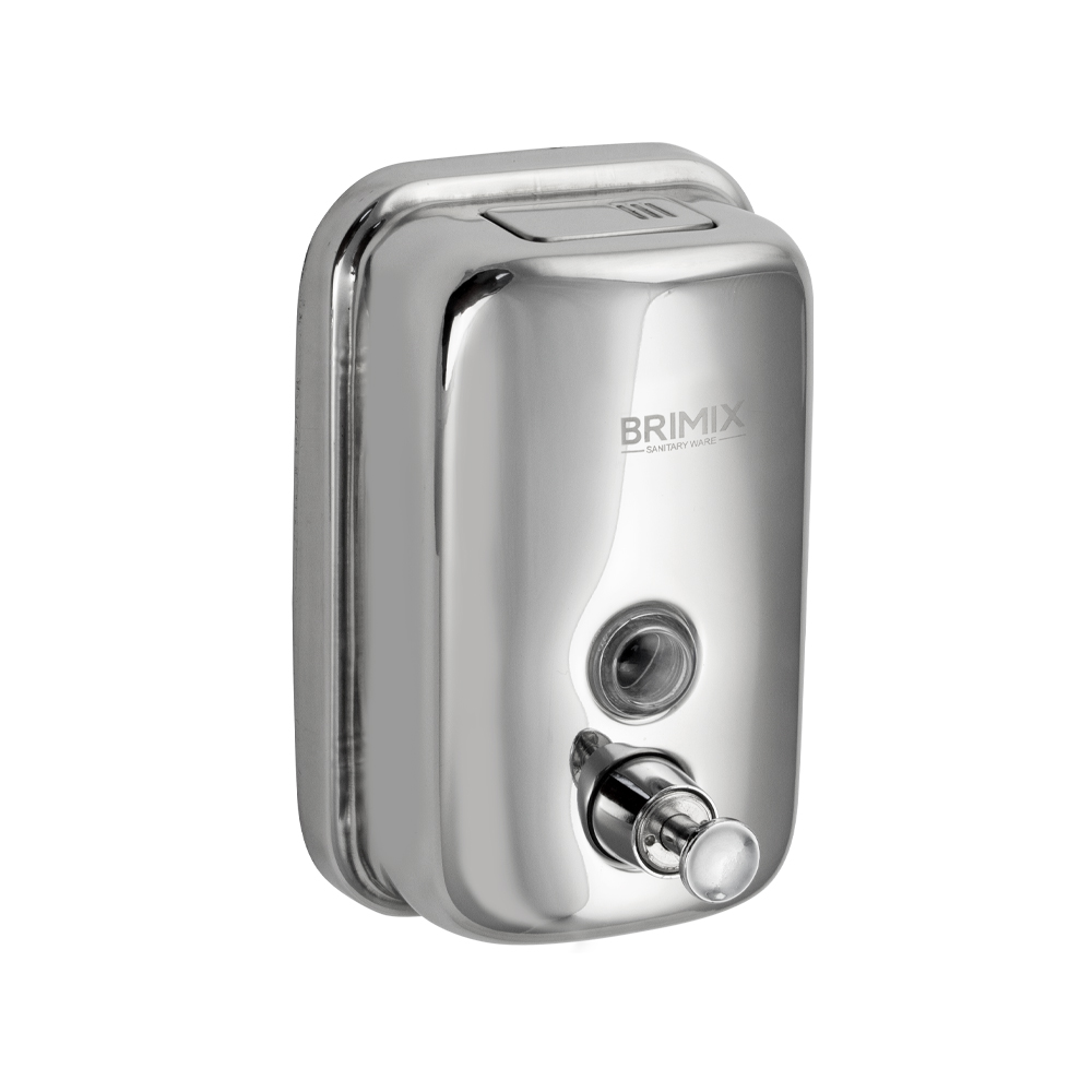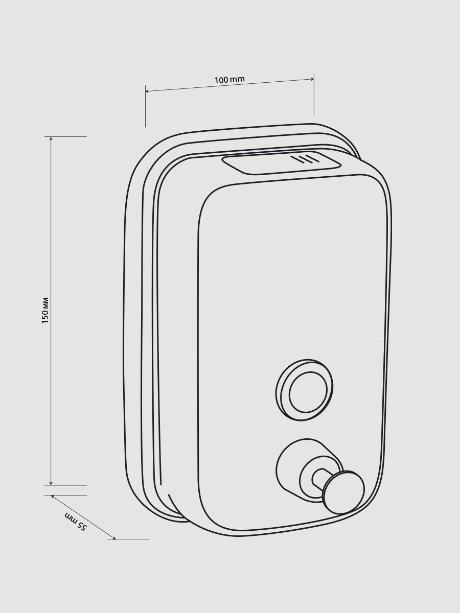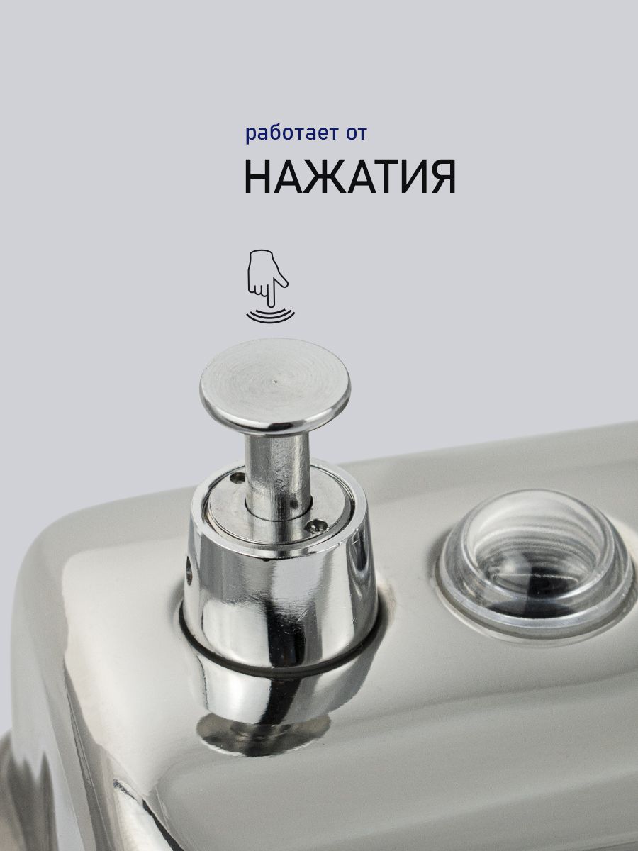 Механический дозатор для жидкого мыла хромированный, предназначен для установки в любых санитарно-гигиенических комнатах.Дозатор прост в эксплуатации, достаточно нажать на кнопку для получения порции средства. Для удобства контроля за уровнем мыла на лицевой поверхности есть смотровое окно. Корпус диспенсера изготовлен из нержавеющей стали марки 304, который выдерживает различные механические воздействия. В резервуар емкостью 500 мл можно заливать как жидкое мыло, так и прочие средства. Разместив диспенсер на стене, достаточно время от времени проверять заполненность резервуара. Иного ухода он не требует, не нуждается в замене батареек. Это отличное решение как для частных владений, так и для гостиниц, кафе, столовых и прочих общественных мест. Габаритные размеры: высота 150 мм, ширина 100 мм, глубина 55 мм. Вес - 0,350 кг, объем - 0,00160 м3.