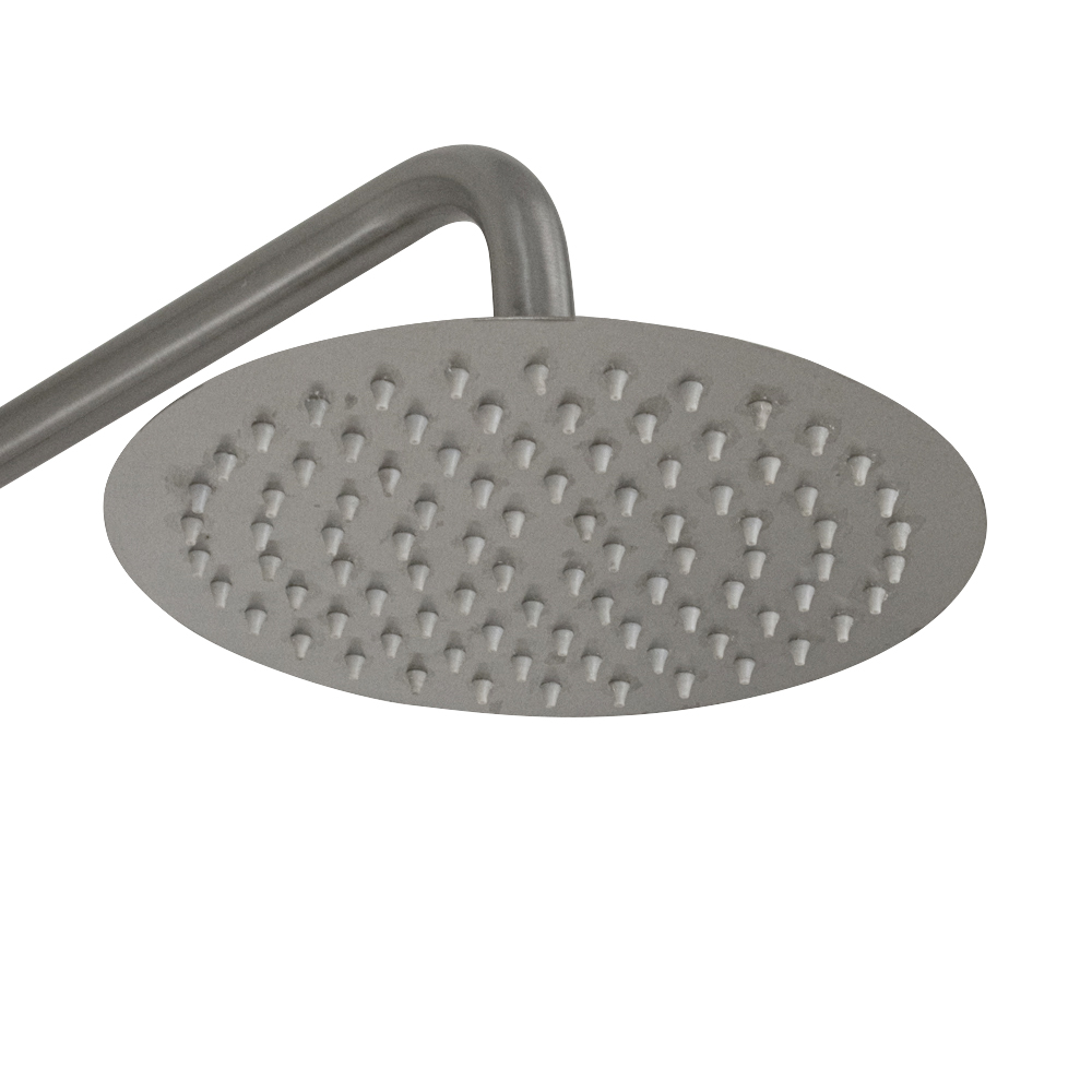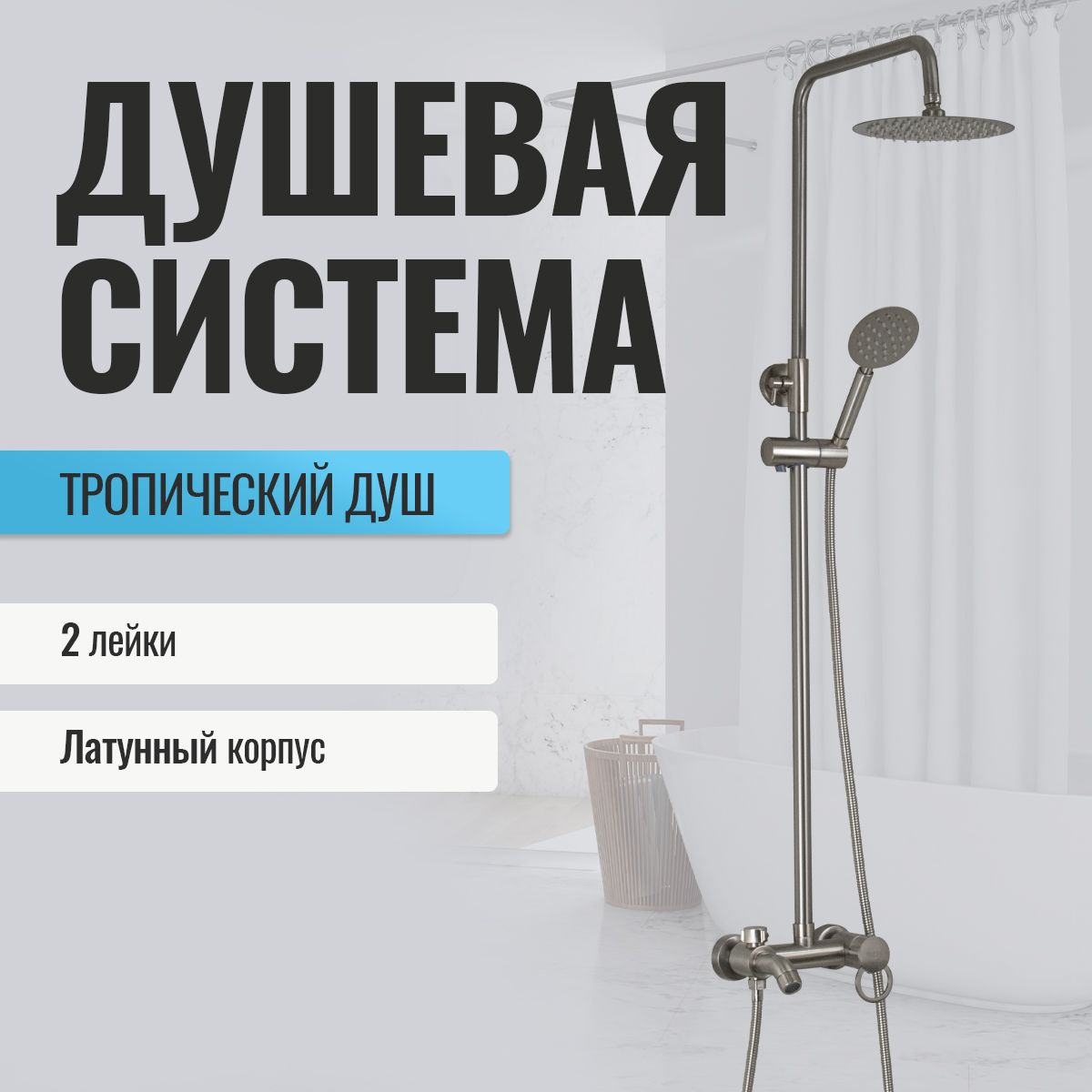 Смеситель + стойка душевая "тропический душ" с двумя лейками в ванную, матовый хром. В дизайне душевой стойки гармонично соединились строгие линии и мягкие переходы. Она отлично впишется в интерьер ванной комнаты в минималистическом стиле. Матовое хромированное покрытие не стирается и сохраняет первозданный внешний вид в течение всего периода эксплуатации. Длительную работу без протечек обеспечивает смеситель с керамическим картриджем. Предусмотрен излив для наполнения ванны. Угол наклона верхнего душа можно регулировать в соответствии с потребностями каждого пользователя. Ручная лейка оснащена металлическим шлангом, который не перекручивается во время водных процедур. Смеситель шаровый с коротким изливом, душевым шлангом и лейкой и дивертор переключения в трёх положениях. Картридж d = 35 мм, ручка с кольцом, аэратор для экономии воды, чашки и эксцентрики. Душевая стойка с присоединением к корпусу смесителя и дополнительным креплением к стене и большой круглой лейкой с эффектом тропического душа. Габаритные р