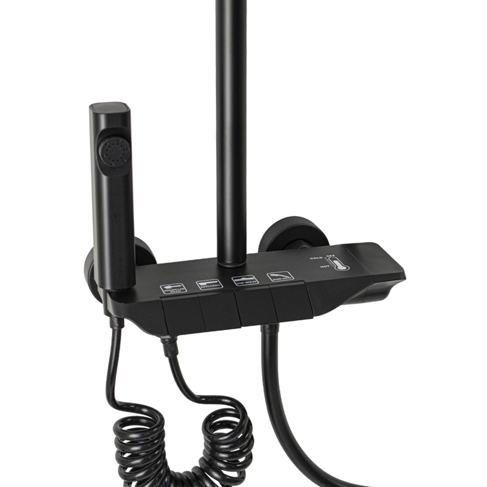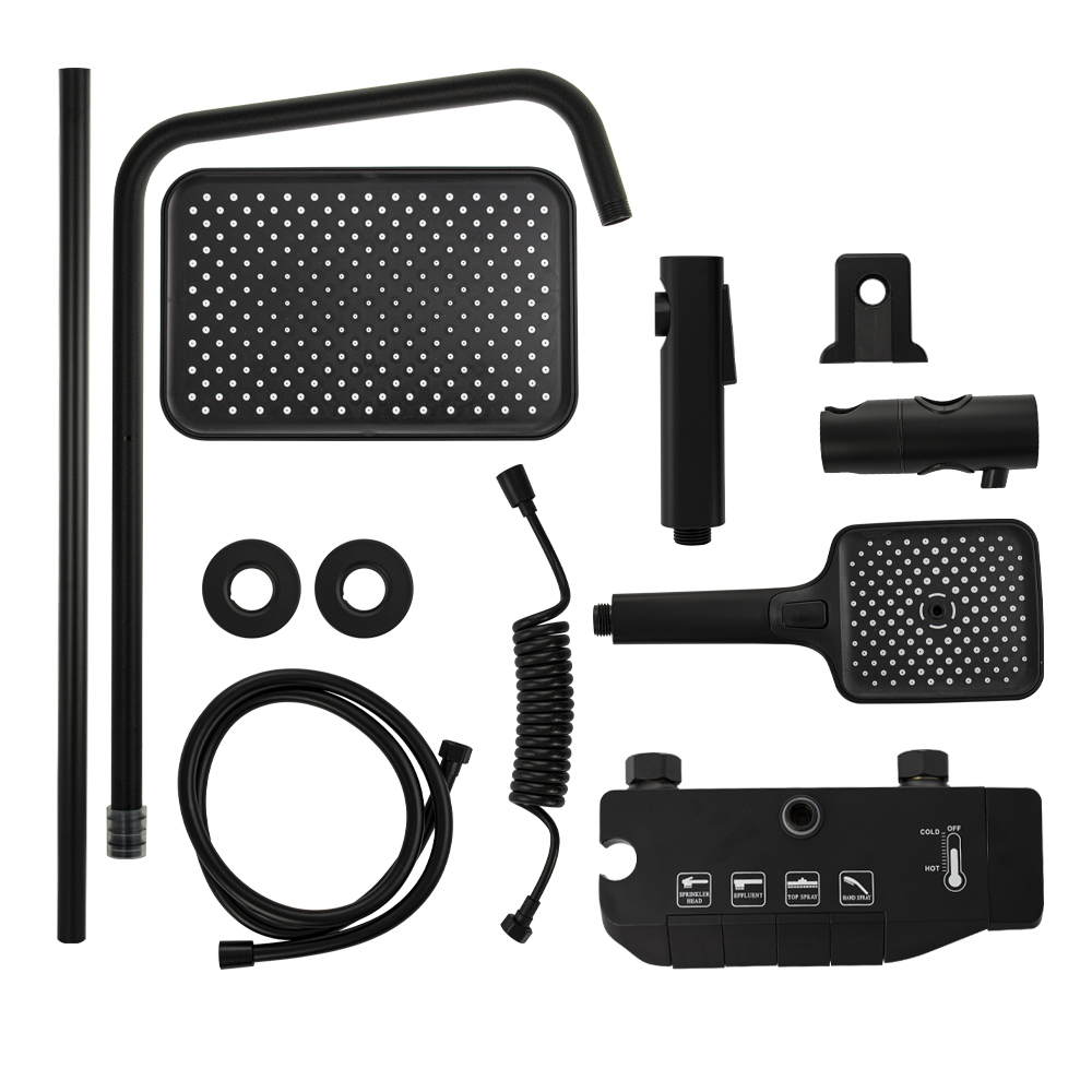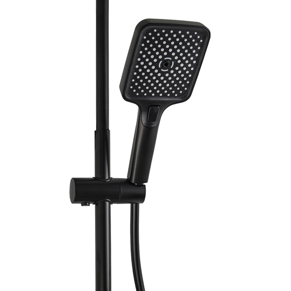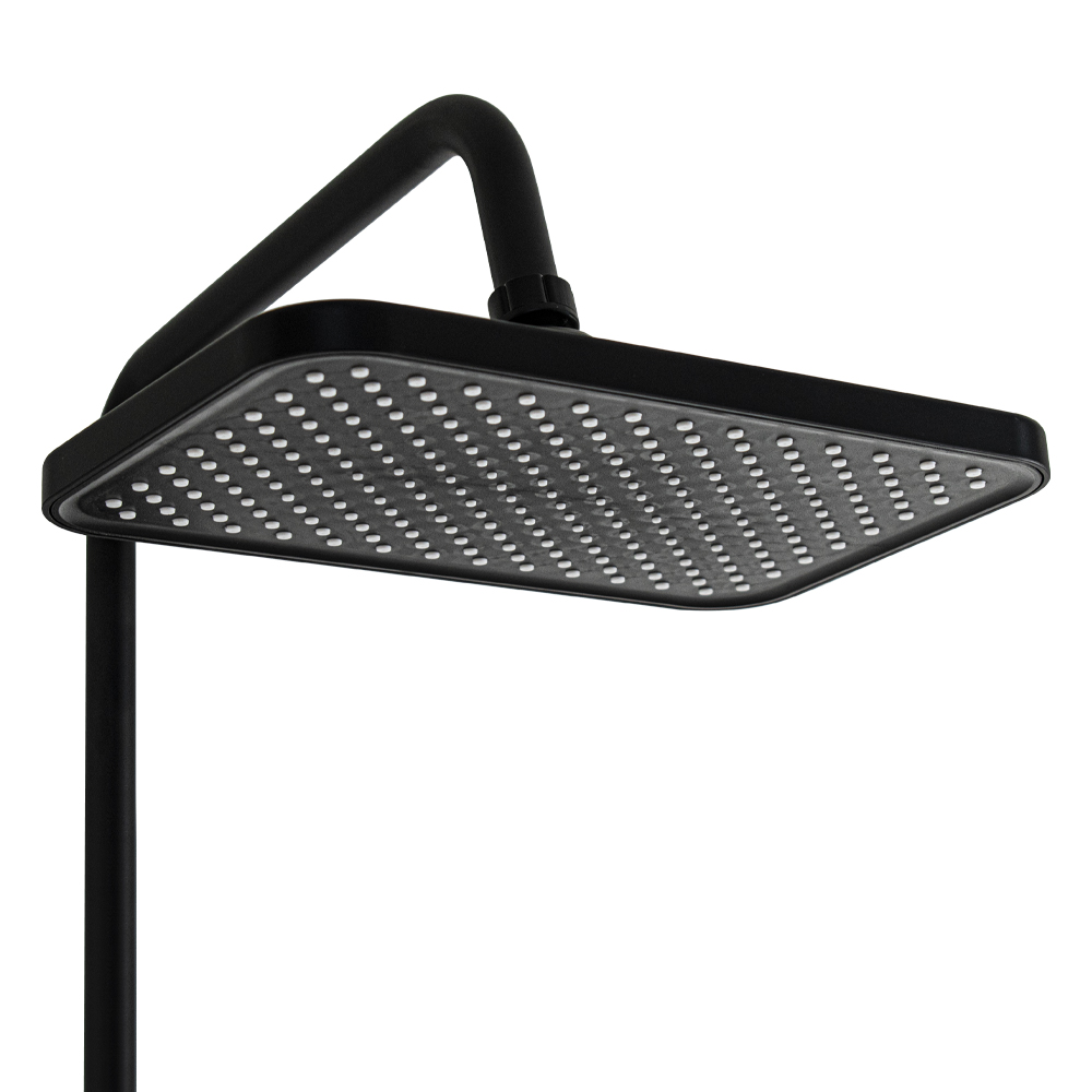 Смеситель + стойка душевая телескопическая "тропический душ" с двумя лейками и гигиеническим душем, в ванную / душевую комнату из АБС пластика. Смеситель c клавишным переключением режимов подачи воды на корпусе, с душевым шлангом и лейкой. Картридж d = мм, ручка литая, аэратор для экономии воды, чашки и эксцентрики душевая, регулируемая по высоте стойка с присоединением к корпусу смесителя и дополнительным креплением к стене и большой квадратной лейкой с эффектом тропического душа. Габаритные размеры: ширина смесителя 150 мм, высота 30 мм, длина излива корпуса 95 мм, высота телескопической стойки 800 - 1200 мм, длина излива стойки 330 мм, душевая лейка 110 мм, лейка тропический душ 270*175 мм, шланг 150 см. Вес - 3.93 кг, объём - 0.03093 м3. В комплекте корпус, чашки, эксцентрики, прокладки, стойка, шланг, две лейки, крепления.