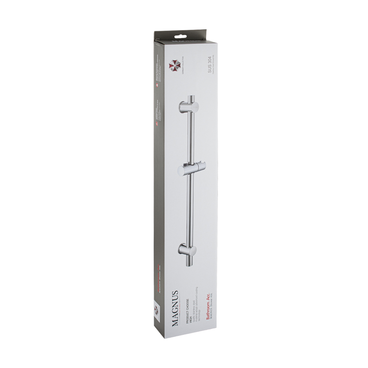 Душевая стойка, белая, произведена из нержавеющей стали марки 304, устойчивой к агрессивному воздействию внешней среды и механическим деформациям, держатель для душа с кнопочной фиксацией и регулировкой по высоте. Расстояние между настенными креплениями регулируется, что позволяет использовать в процессе монтажа отверстия, имеющиеся в стене. Размеры: высота штанги 670 мм, глубина 67 мм, диаметр трубы 25 мм, диаметр крепления 37 мм. Вес - 0,700 кг, объём - 0,005 м3. В комплекте душевая штанга, крепления, держатель душевой лейки.