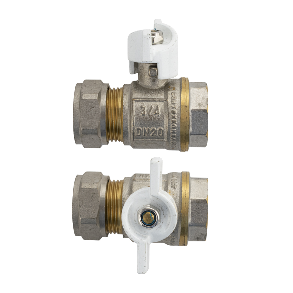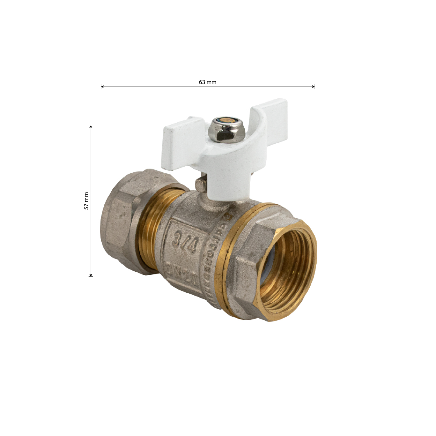 Кран шаровой для металопластика 20х3/4, ц/г, белая бабочка, латунный. Габаритные размеры: высота 57 мм, ширина 63 мм. Вес - 0,300 кг, объем - 0,00032 м3.