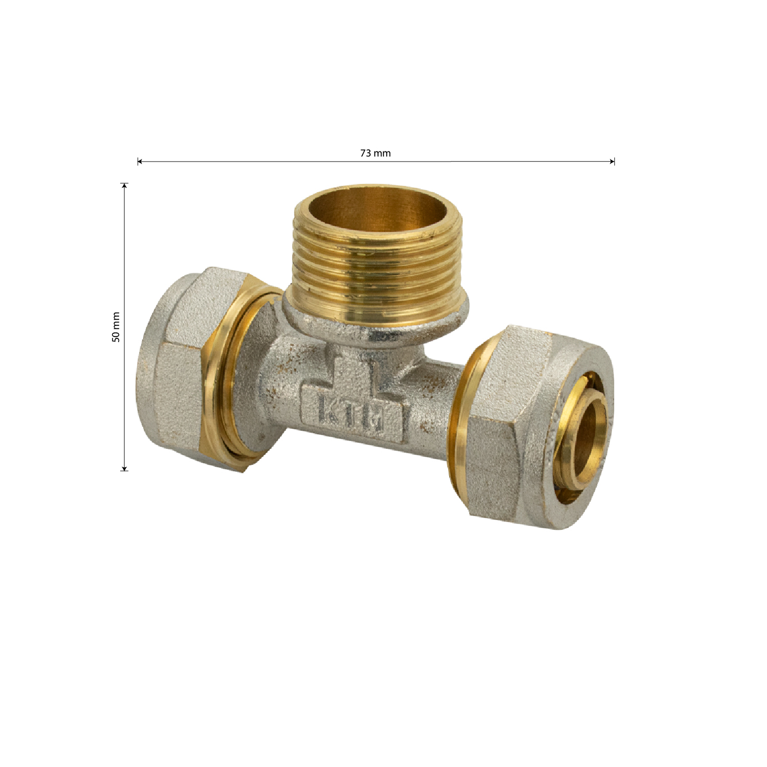 Тройник для соединения м/п трубы 16х1/2х16, ц/ш/ц, латунный. Габаритные размеры: высота 50 мм, ширина 73 мм. Вес - 0,200 кг, объем - 0,00006 м3.