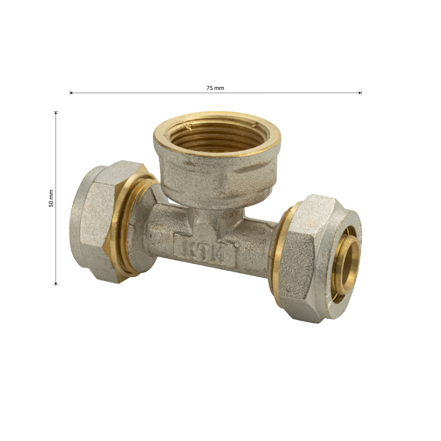 Тройник для соединения 20х3/4х20, ц/г/ц, латунный. Габаритные размеры: высота 50 мм, ширина 75 мм. Вес - 0,200 кг, объем - 0,00010 м3.