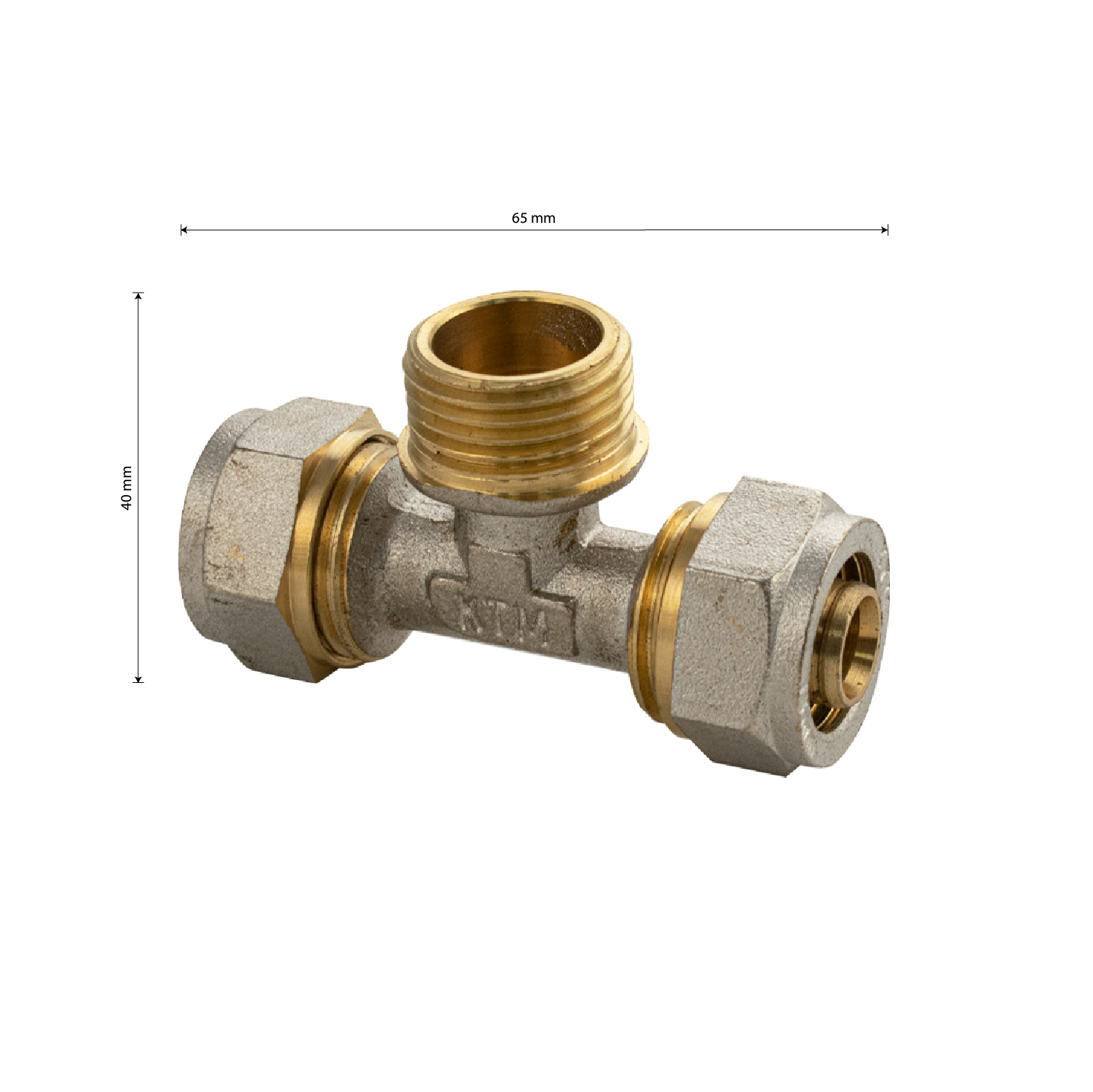 Тройник для соединения м/п трубы 20х3/4х20, ц/ш/ц, латунный. Габаритные размеры: высота 40 мм, ширина 65 мм. Вес - 0,200 кг, объем - 0,00010 м3.