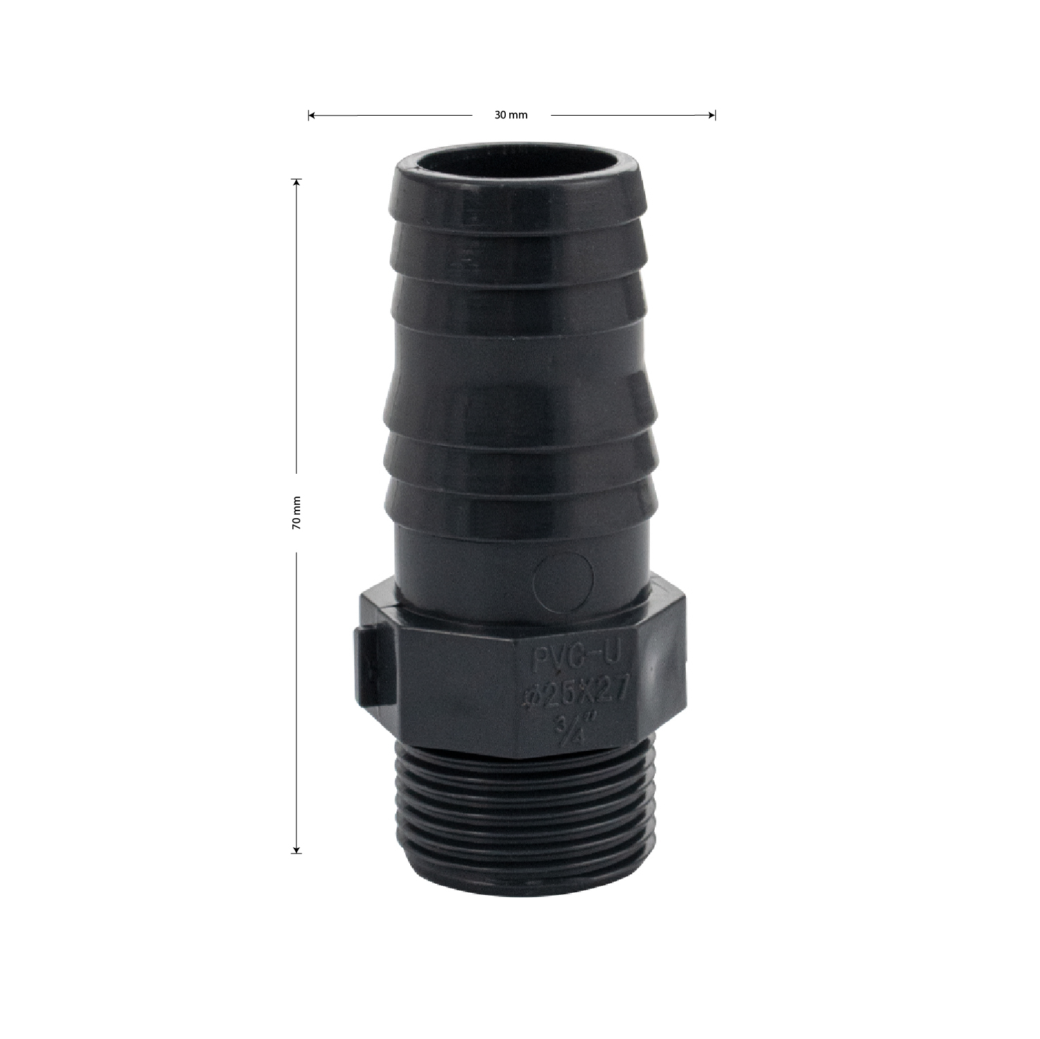 Штуцер 3/4" п/п, полипропиленовый из АБС пластика. Основное преимущество, которым обладают штуцер - это регуляция потока воды, его плавности и интенсивности. Изделие изготовлено из полипропилена, что делает его легче и проще в плане эксплуатации, чем запорная арматура из других материалов (таких как латунь, сталь и др.), а также устойчив к коррозии (нержавеющий). Габаритные размеры: высота 70 мм, ширина 30 мм. Вес - 0,030 кг, объём - 0,00009 м3.