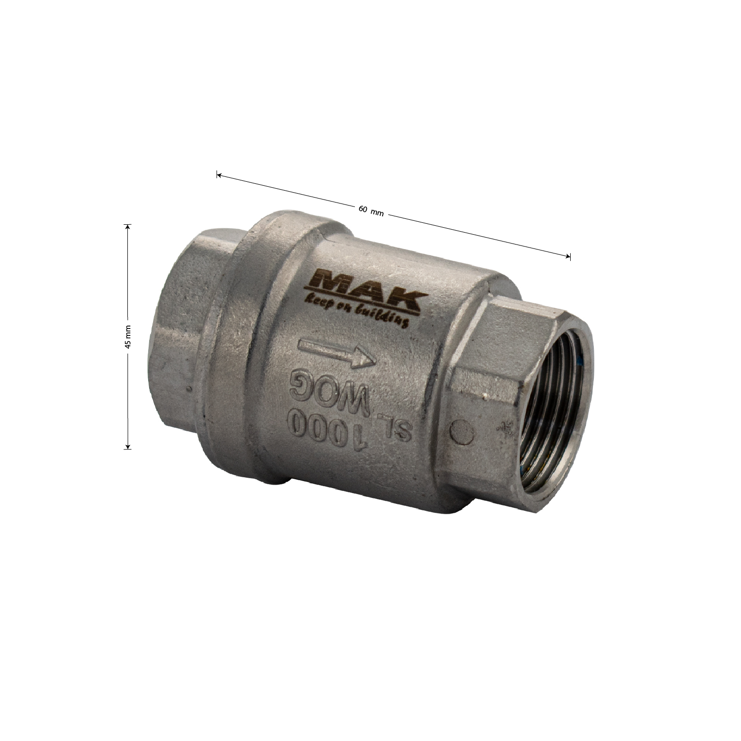 Обратный клапан 3/4, из нержавеющей стали предназначен для защиты трубопровода от обратного потока рабочей среды. Применяется в трубопроводах систем питьевого, хозяйственно - бытового и промышленного назначения, трубопроводах систем холодного, горячего водоснабжения, отопления, сжатого воздуха и жидких углеводородов. Данный обратный клапан монтируется в любом положении, а направление потока рабочей среды указано стрелкой на корпусе. Корпус и золотниковый механизм (шток, верхняя и нижняя тарелки) обратного клапана изготовлены из высококачественной нержавеющей стали. Габаритные размеры: высота мм, диаметр мм. Вес - 0,19 кг, объём - 0,00016 м3.