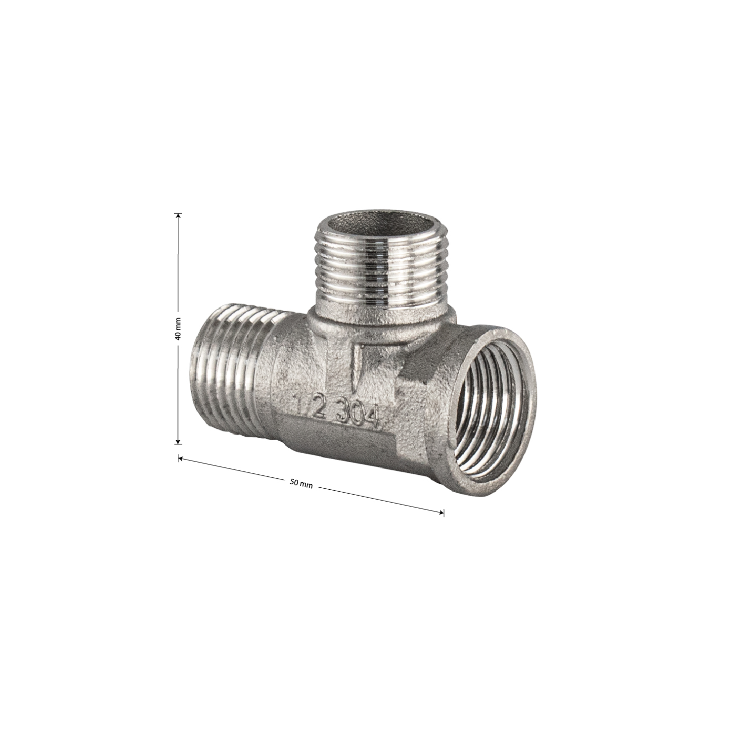 Тройник 1/2"х1/2"х1/2" ш/ш/г, из нержавеющей стали марки SUS 304.