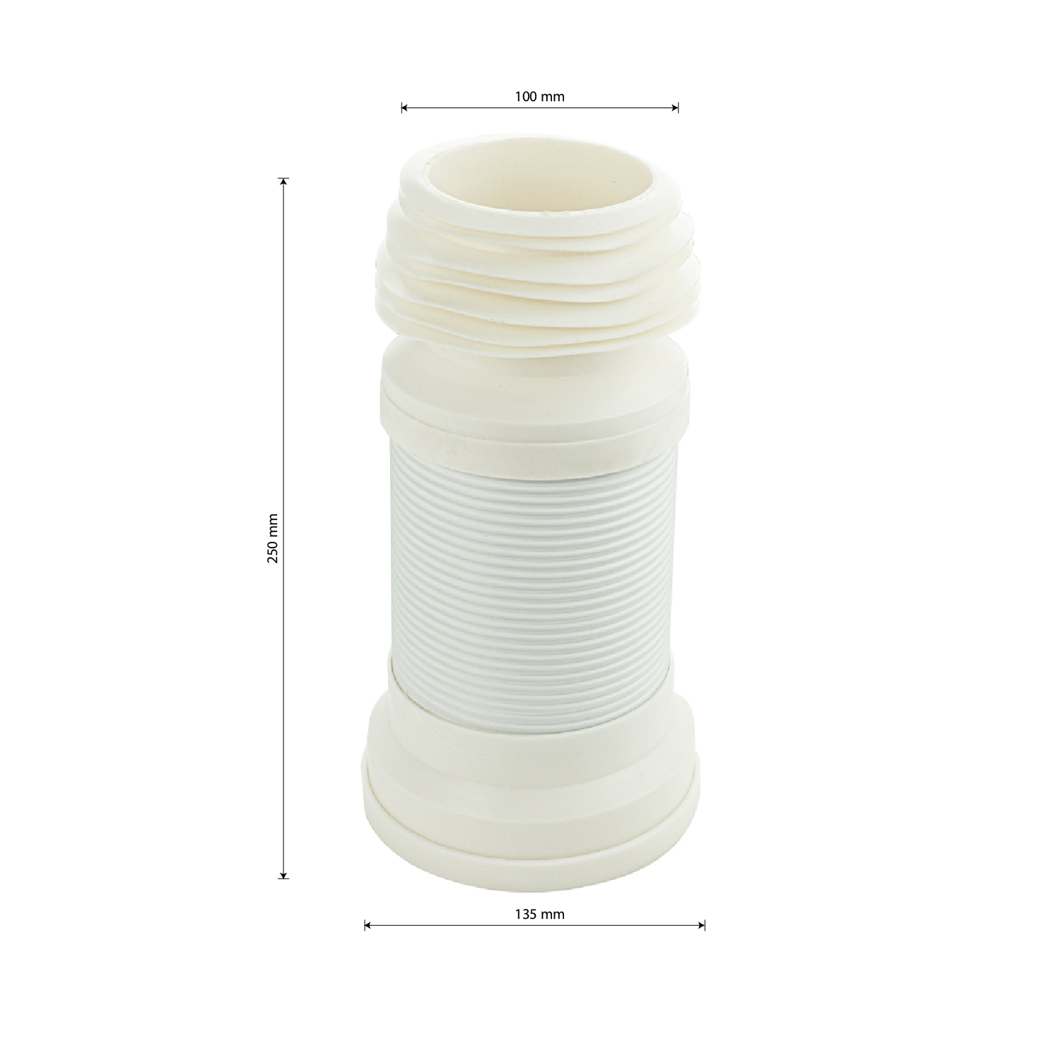 Фановая гофрированная труба, армированная, используется в процессе подсоединения унитаза к канализационной системе. Деталь изготовлена из высококачественного пластика, который не разрушается под воздействием агрессивных химических средств и не страдает от механических повреждений, армированная нить хорошо держит форму, соединение через манжету без герметика, надежность, быстрота и удобство монтажа. Она оснащена прочной уплотнительной прокладкой, выполненной из эластомера. Последняя обеспечивает герметичность соединения. Изделие может использоваться со всеми унитазами, обладающими горизонтальным или косым выпуском. Габаритные размеры: от 200 до 500 мм, диаметр входа равен 90 -107 мм, а выхода – 100 мм. Вес - 0,500 кг, объём - 0,00450 м3.