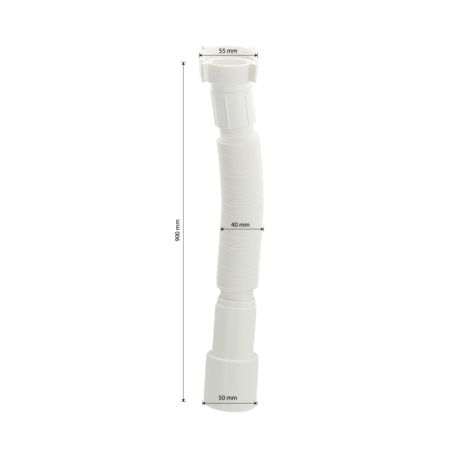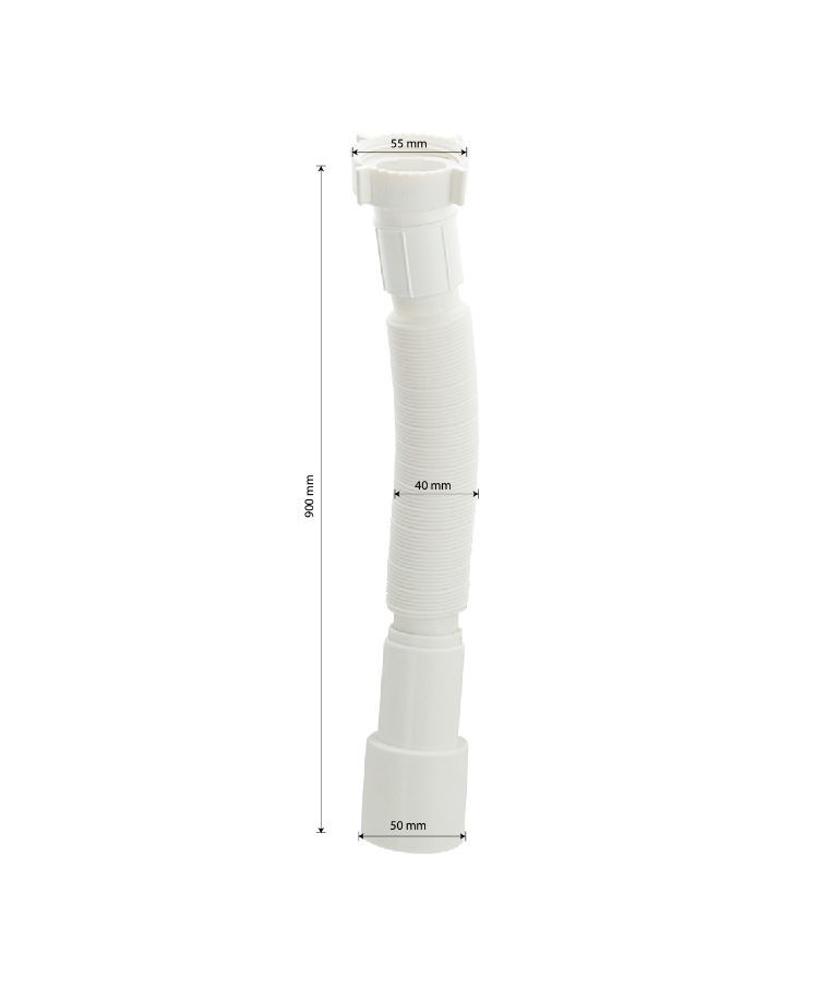 Гибкая гофрированная труба из высокопрочного пластика АБС, предназначена для слива воды из мойки или раковины. Она герметично соединяет сифон с канализационной сетью. Габаритные размеры: длина 900 мм, диаметр гайки 55 мм, диаметр выхода: 50 мм. Вес - 0,150 кг, объём - 0,00096 м3. Габаритные размеры упаковки: ширина 470 мм, высота 120 мм, глубина 50 мм.