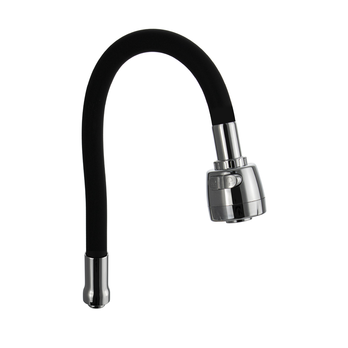 Излив к смесителю на кухню, гибкий с большим двухрежимным аэратором. Основным предназначением излива является подача воды, поступающей из смесителя. С-образная деталь имеет удобную конфигурацию и отлично подходит к смесителям на раковину и мойкам. Длинный излив обеспечит мощный поток воды. Универсальный излив для смесителя изготовлен из нержавеющей стали с силиконовой оболочкой черного цвета. За счет гибкости излива, Вы без труда сможете вымыть объемную посуду, фрукты, дотянуться до труднодоступных мест и любого содержимого мойки Идеально впишется в любой дизайн и может использоваться повсеместно. Устройство оснащено аэратором, проходя через него, вода насыщается множеством пузырьков воздуха, позволяя формировать струю в мягкий и ровный поток, а также экономить расход воды. Габаритные размеры: глубина 170 мм, высота 300 мм. Вес - 0,55 кг, объём - 0,00341 м3.