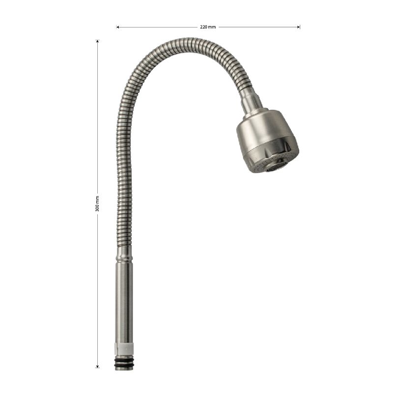 Излив к смесителю на кухню, гибкий с большим двухрежимным аэратором. Основным предназначением излива является подача воды, поступающей из смесителя. С-образная деталь имеет удобную конфигурацию и отлично подходит к смесителям на раковину и мойкам. Длинный излив обеспечит мощный поток воды. Универсальный излив для смесителя изготовлен из нержавеющей стали и имеет матовое покрытие. За счет гибкости излива, Вы без труда сможете вымыть объемную посуду, фрукты, дотянуться до труднодоступных мест и любого содержимого мойки Идеально впишется в любой дизайн и может использоваться повсеместно. Устройство оснащено аэратором, проходя через него, вода насыщается множеством пузырьков воздуха, позволяя формировать струю в мягкий и ровный поток, а также экономить расход воды. Габаритные размеры: глубина 220 мм, высота 300 мм. Вес - 0,350 кг, объём - 0,0011 м3.